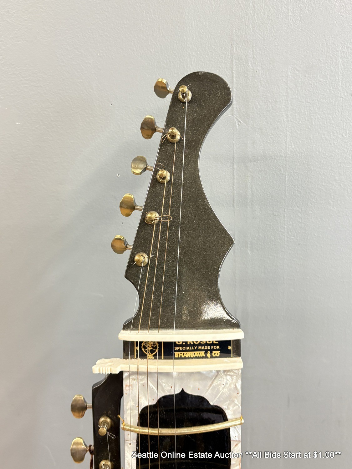 G. Rosul For Bhargave & Co. Pro Electric Fusion Sitar In Black With Padded Soft-Sided Case