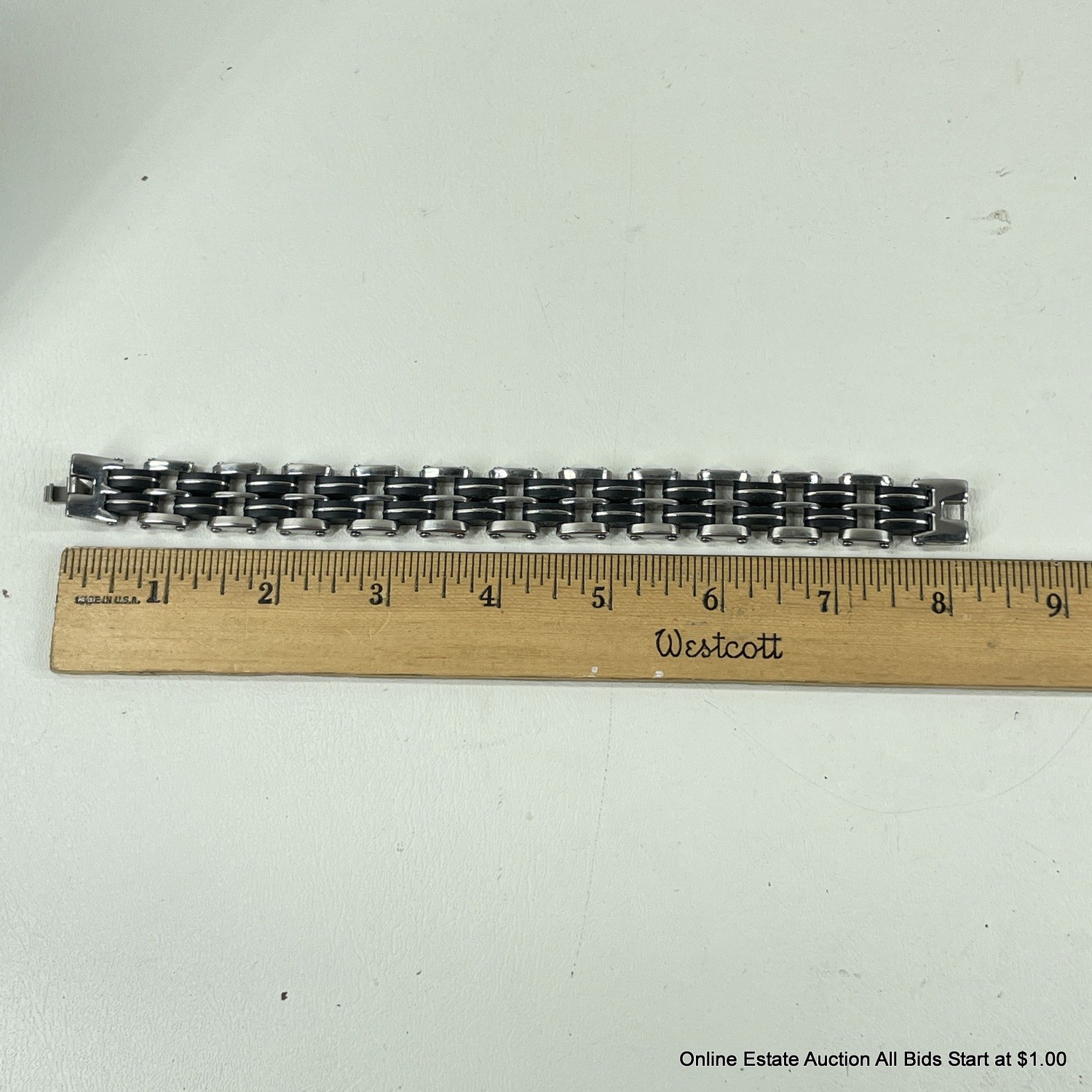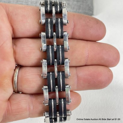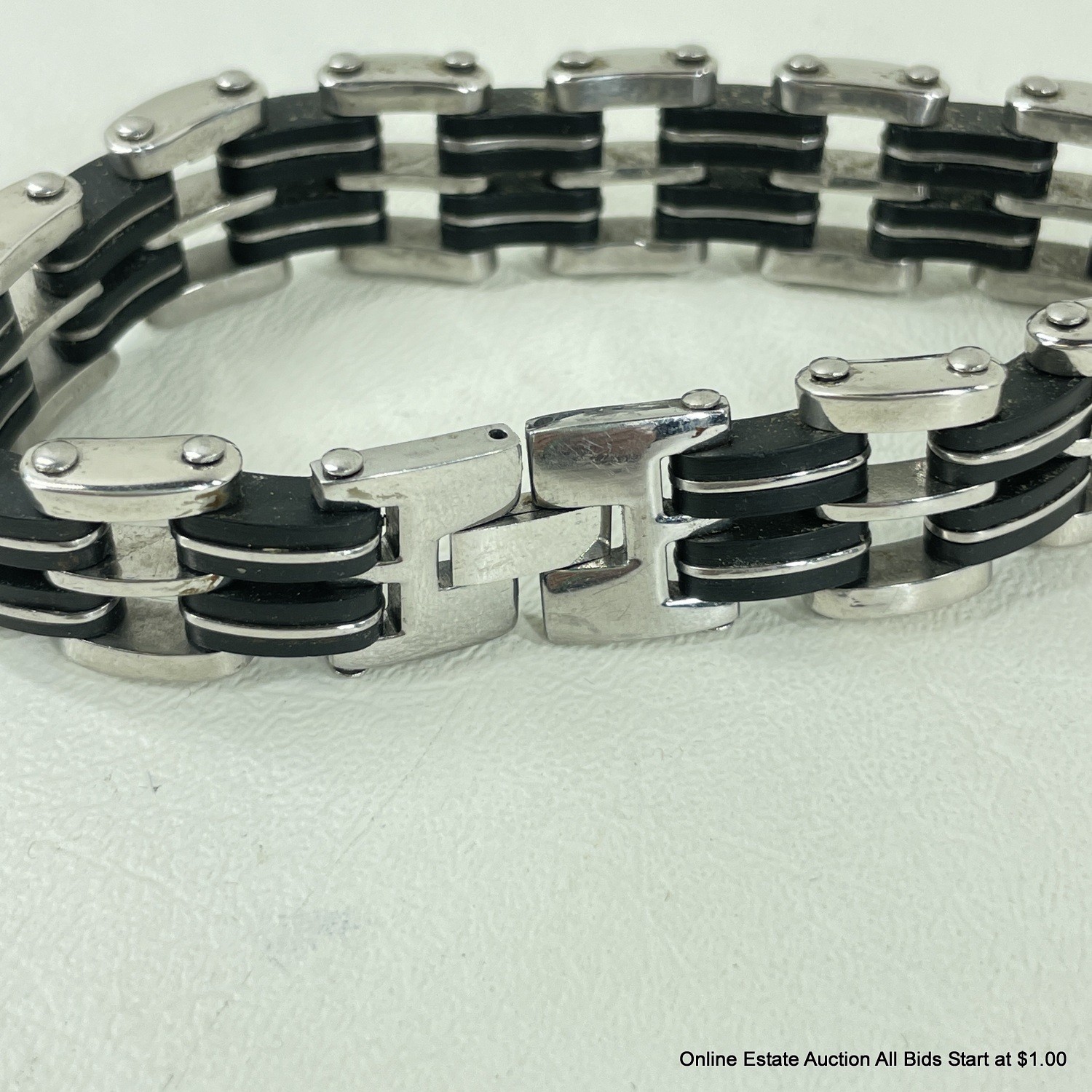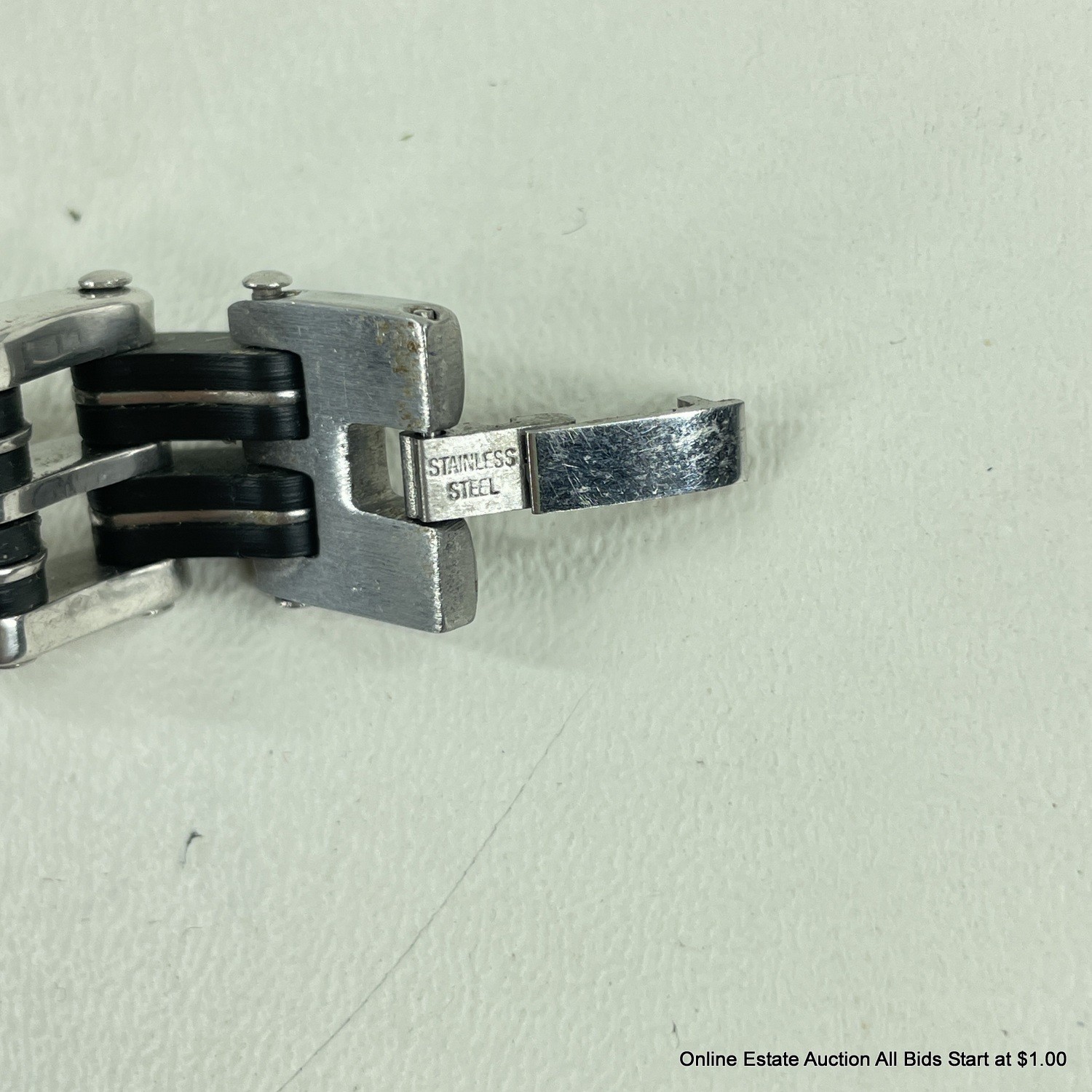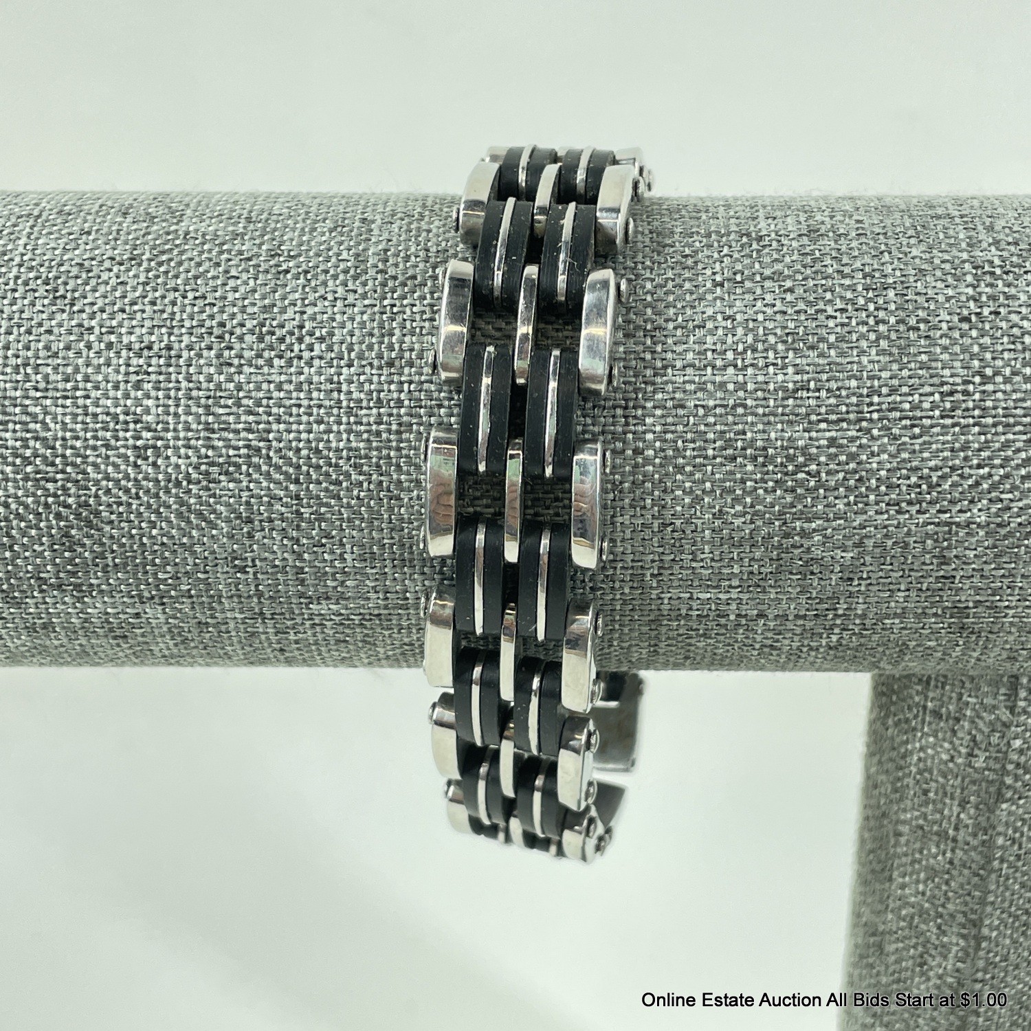 Stainless Steel and Rubber Chunky Chain Bracelet