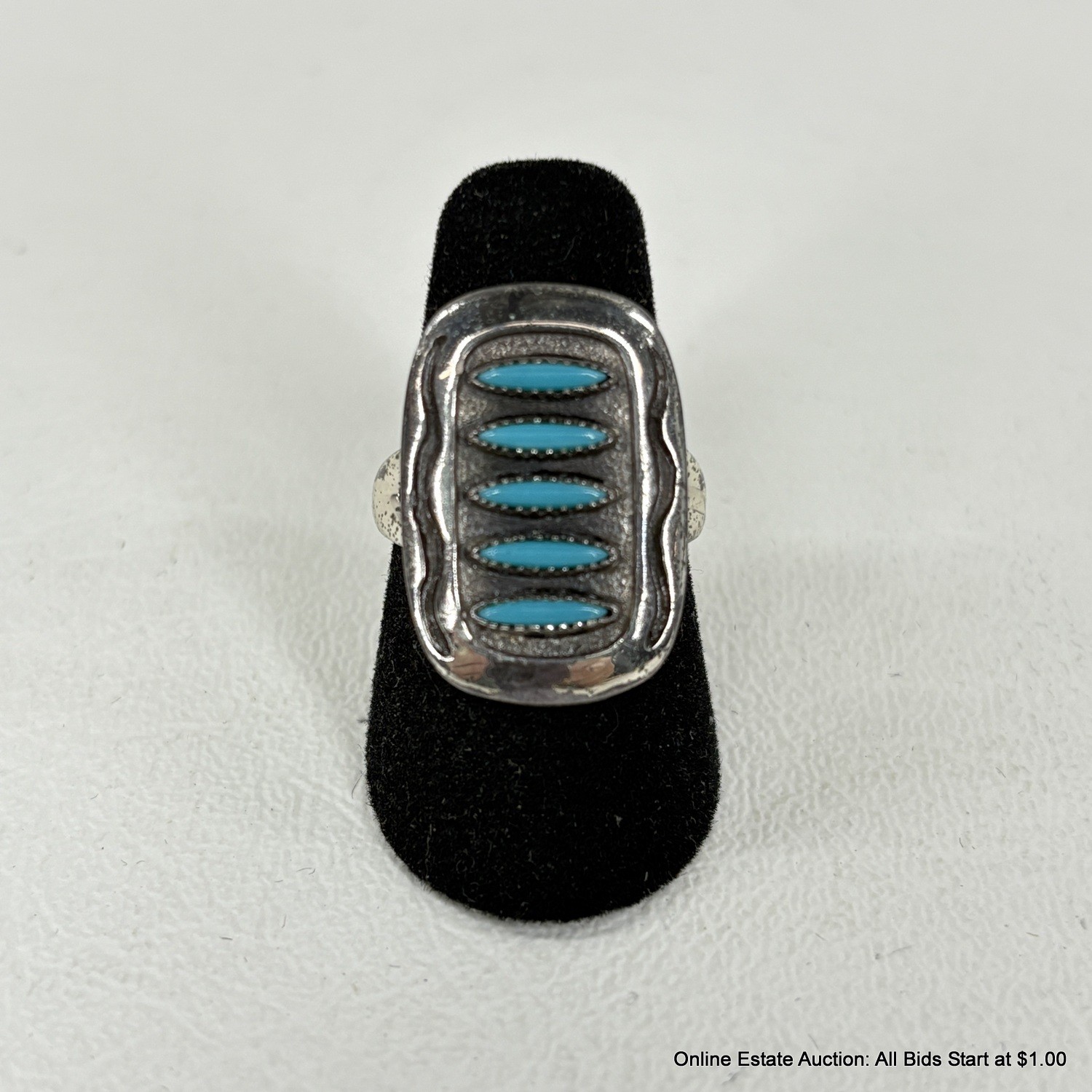 Sterling Silver Ring With Turquoise Stones 6 Grams Total Weight