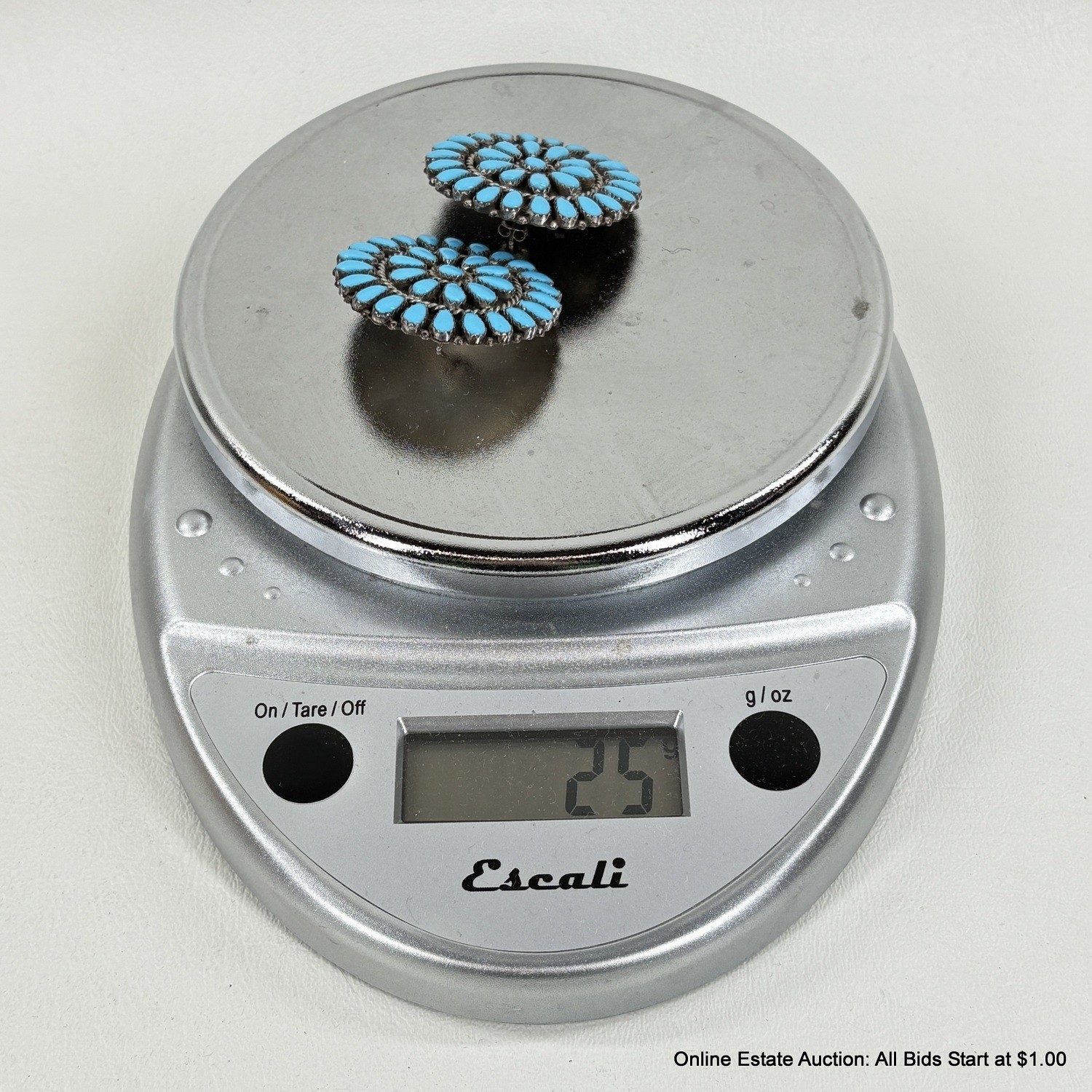 Sterling Silver With Turquoise Earrings 25 Grams Total Weight