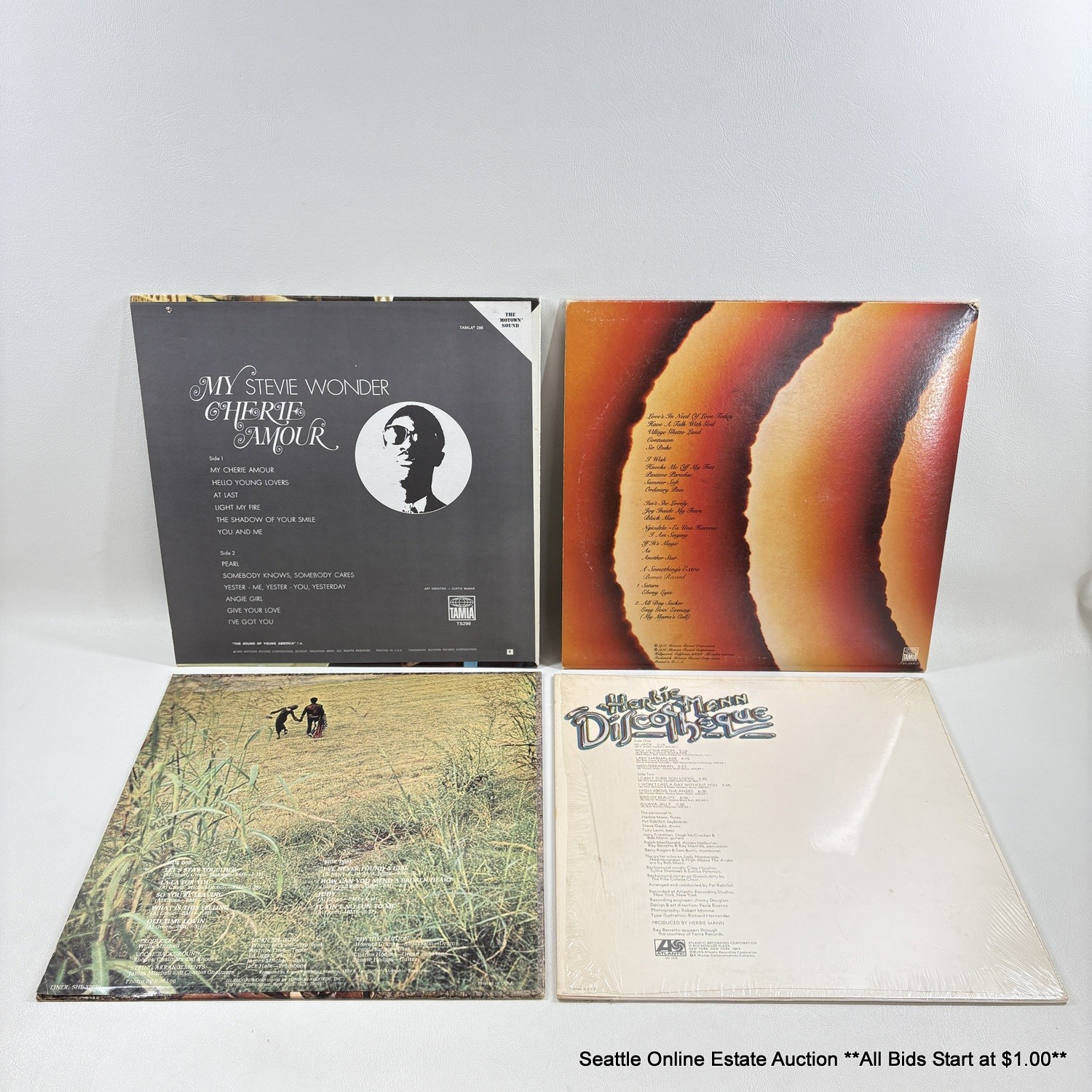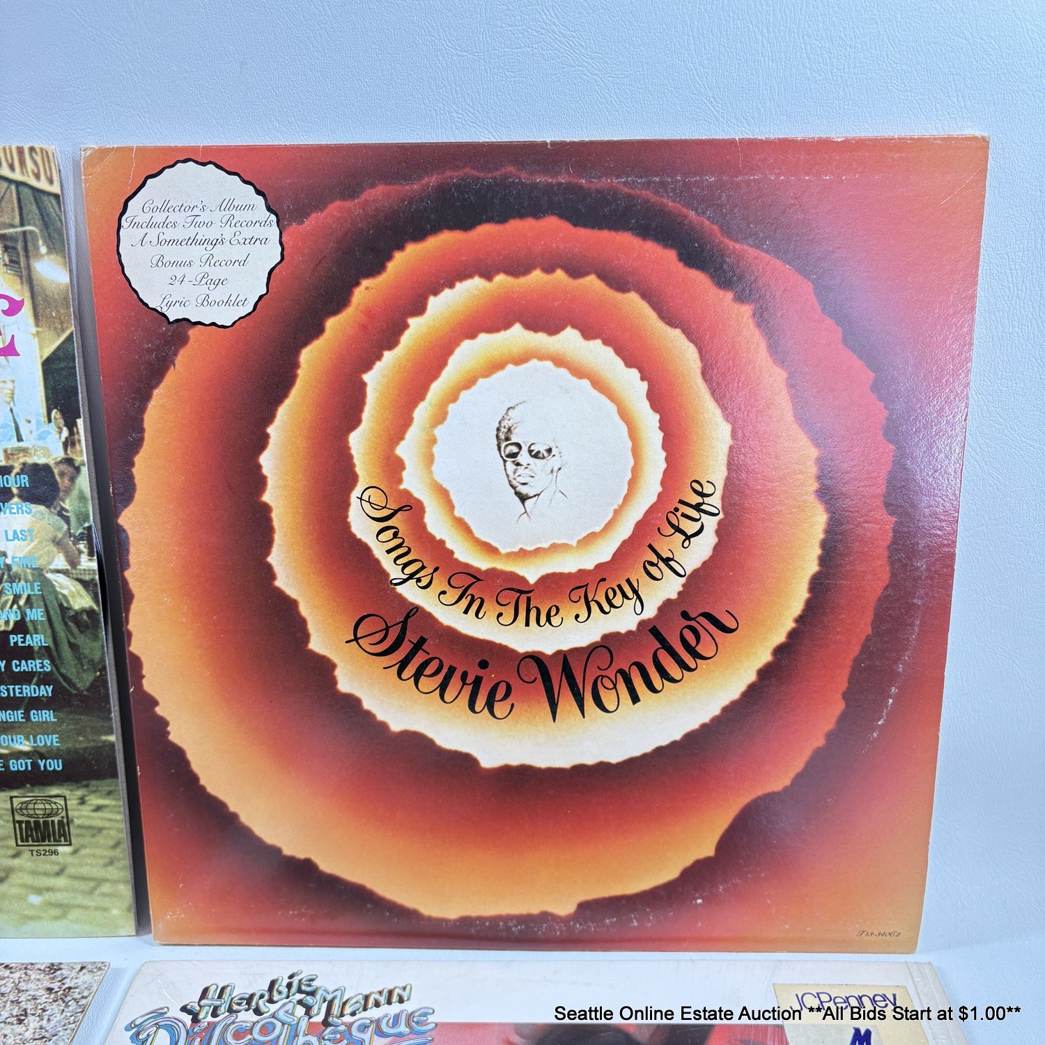Some light scratches to Al Green, Herbie Mann, and The Stevie Wonder Songs In The Key Of Life records, wear and tear to covers.