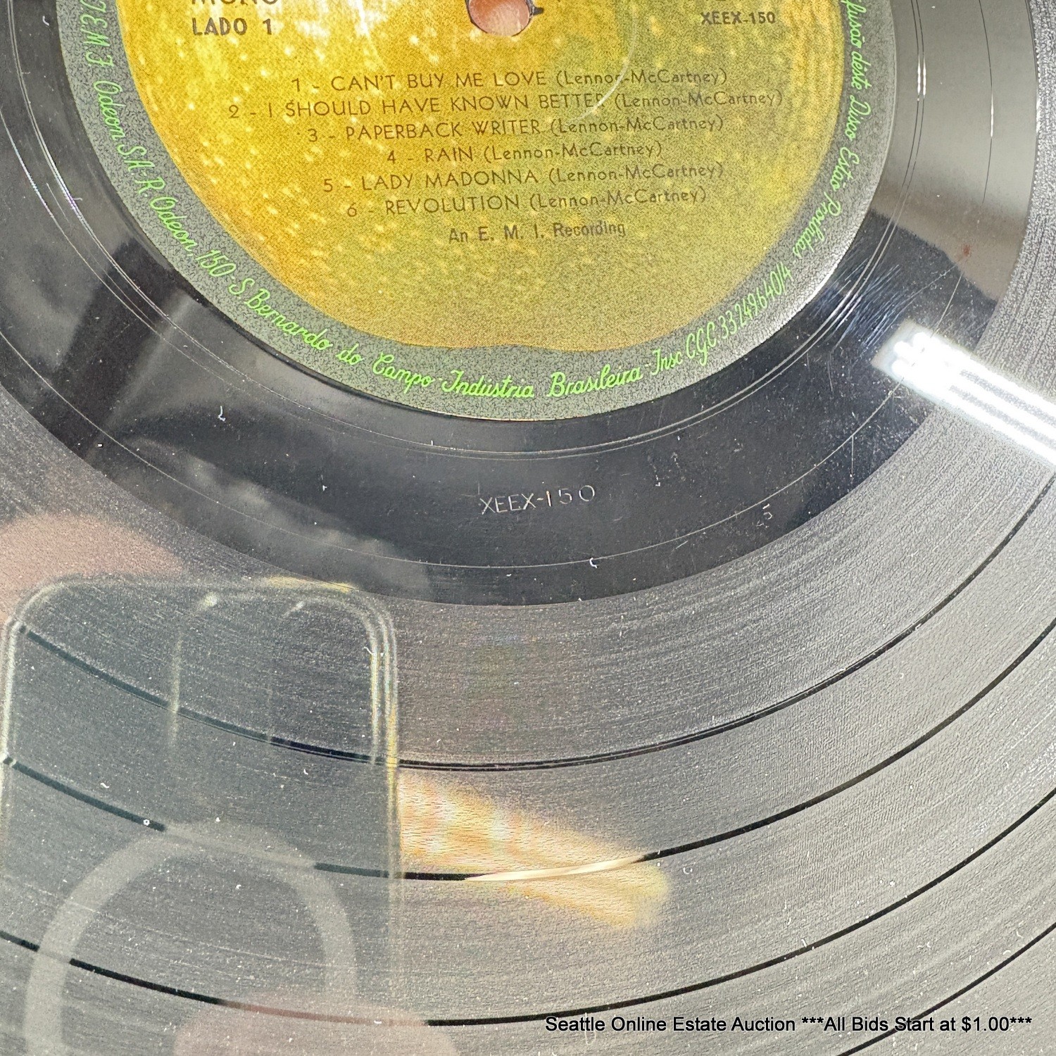 One very light scratch on one side, album cover is splitting at bottom