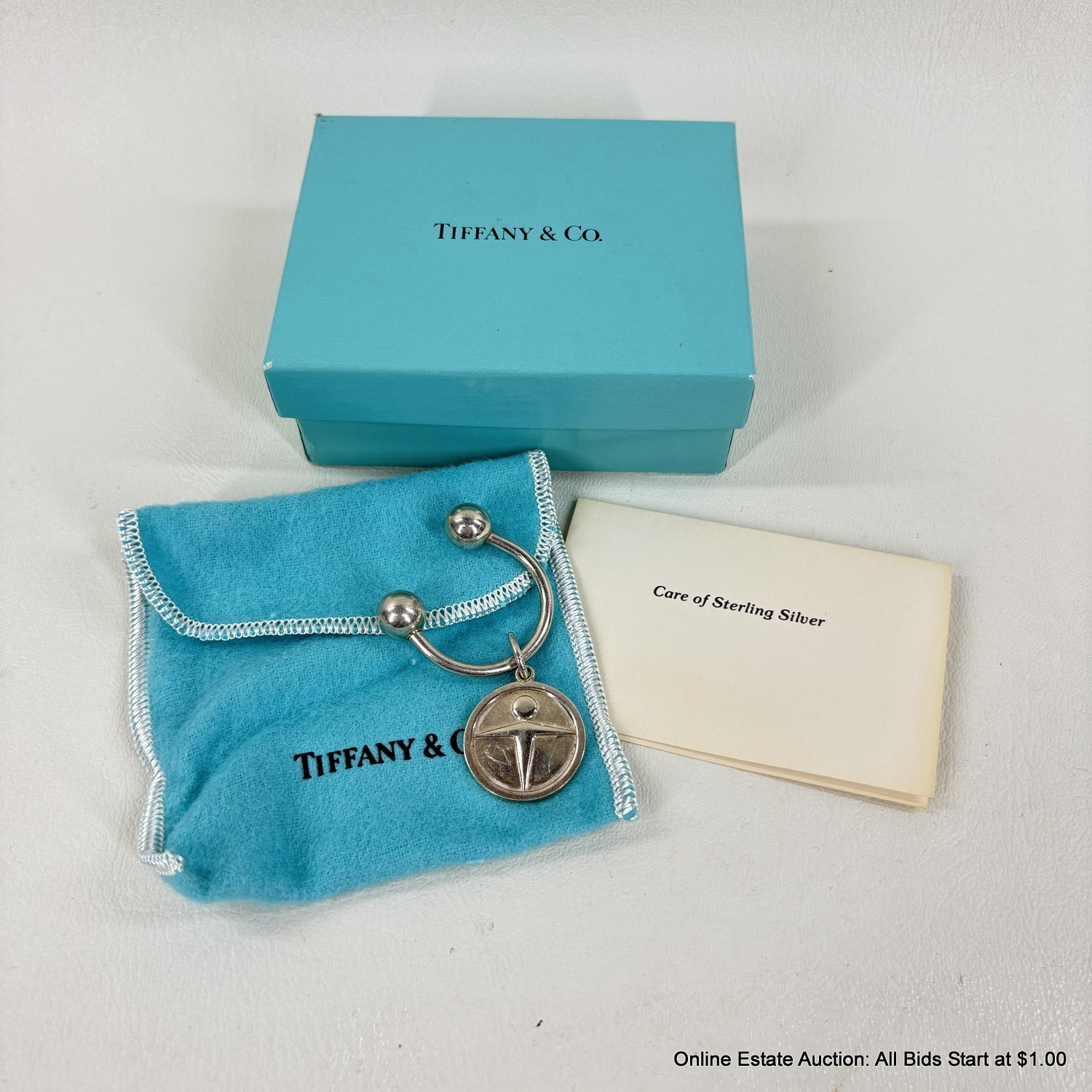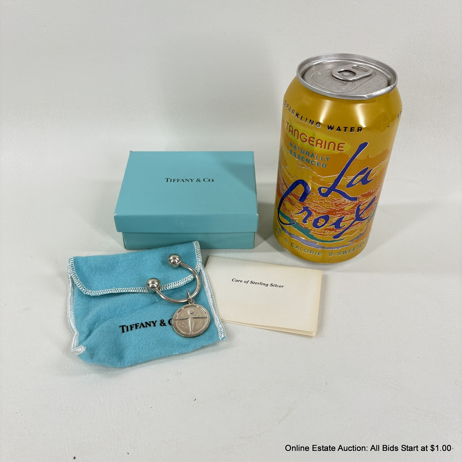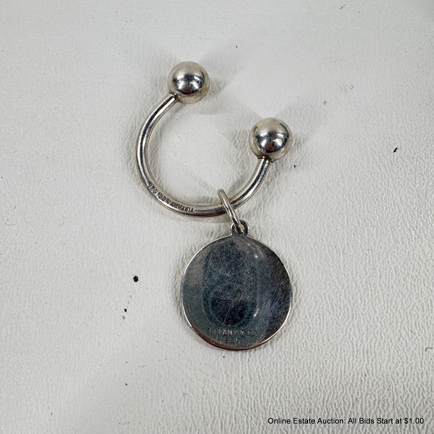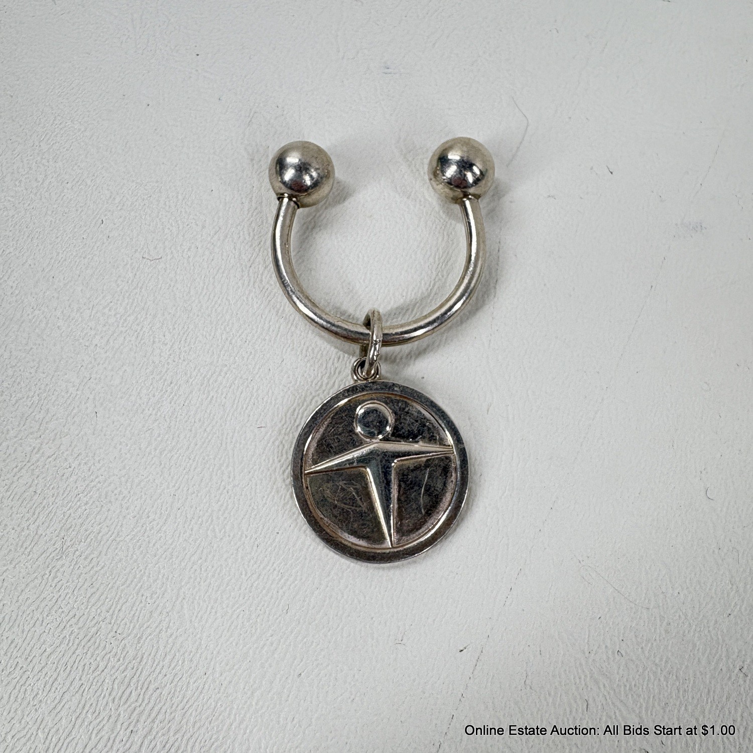 Tiffany & Co. Sterling Silver Manpower Charm Key Ring With Bag and Box Total Weight 13 Grams