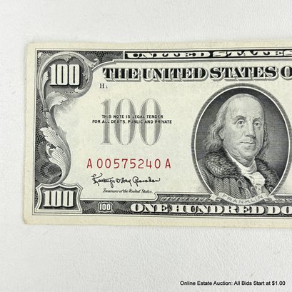 Ungraded Series 1966 U.S. Red Seal $100 Dollar Bill