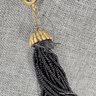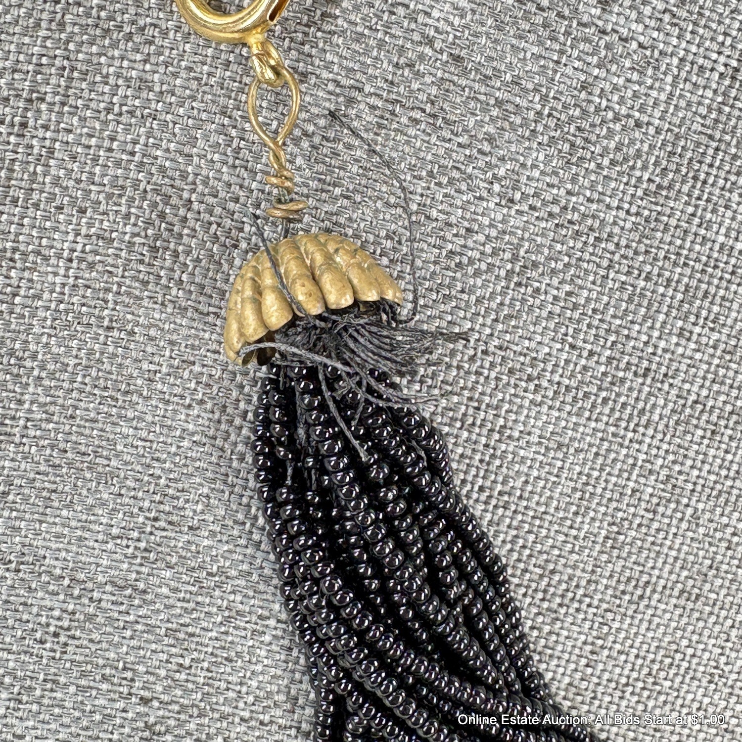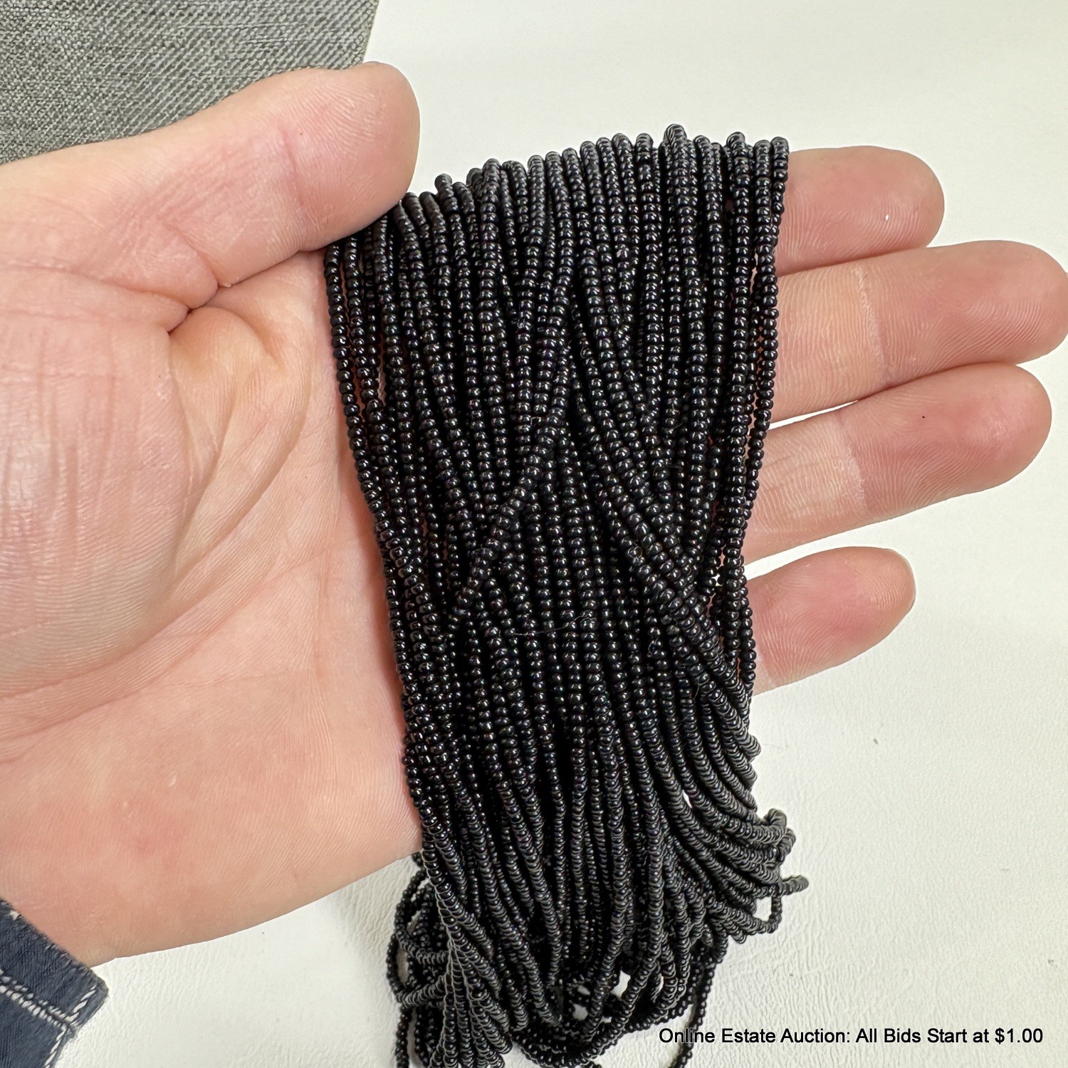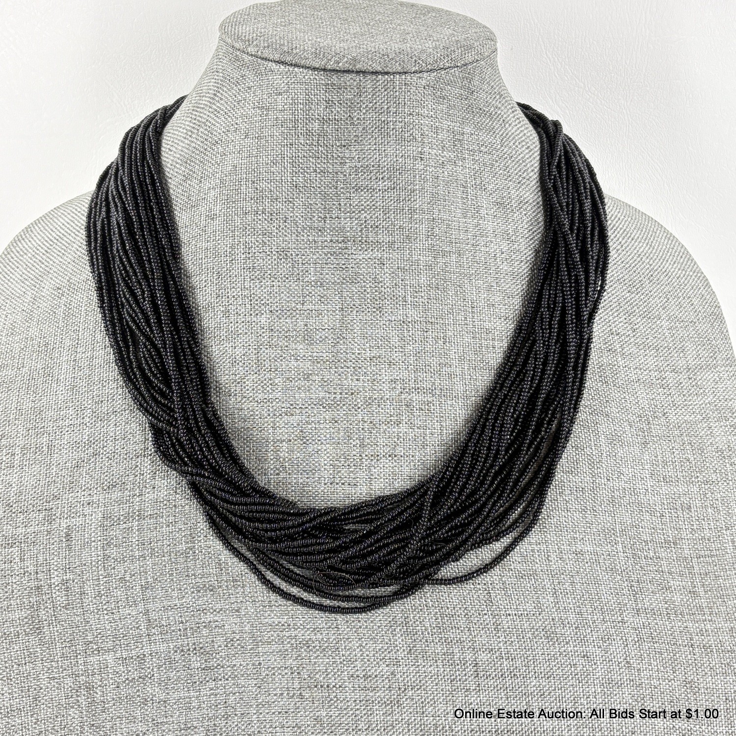 Vintage Black Glass Beaded Multi-Strand Necklace, Likely Handmade