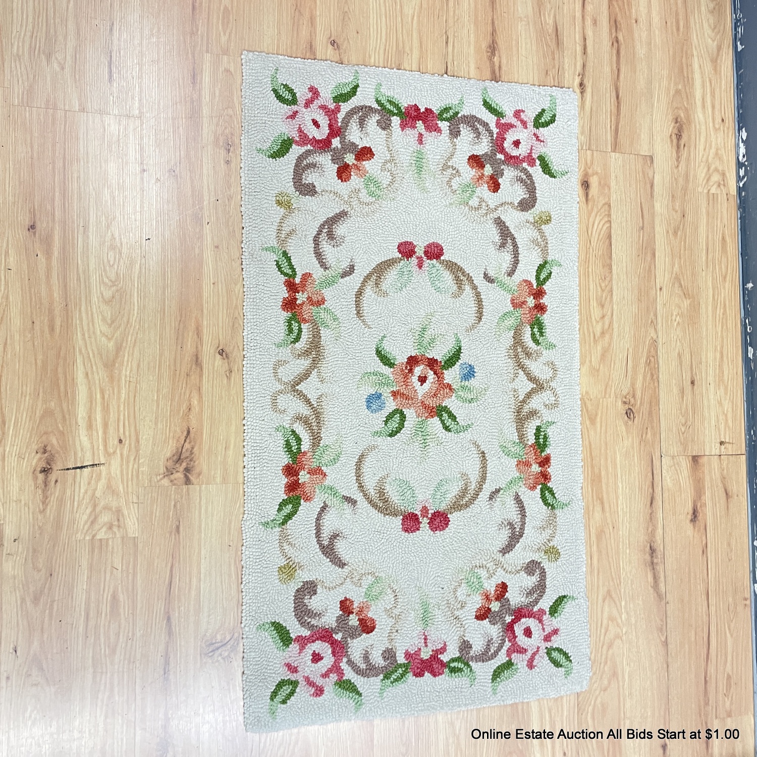 Vintage Rose Patterned Hooked Area 44" x 24"Rug