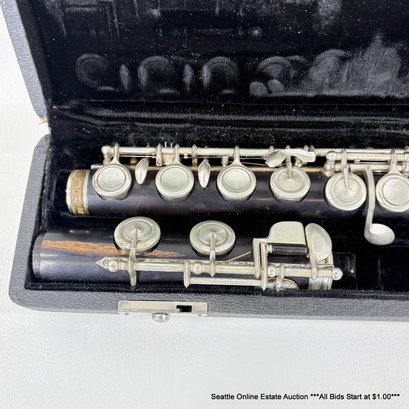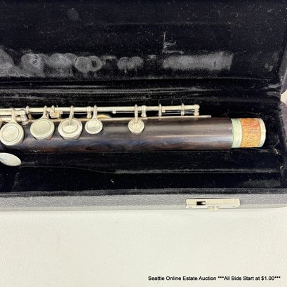 Vintage Wood Closed Hole Flute Body And Foot Joint With Padded Hard Side Case