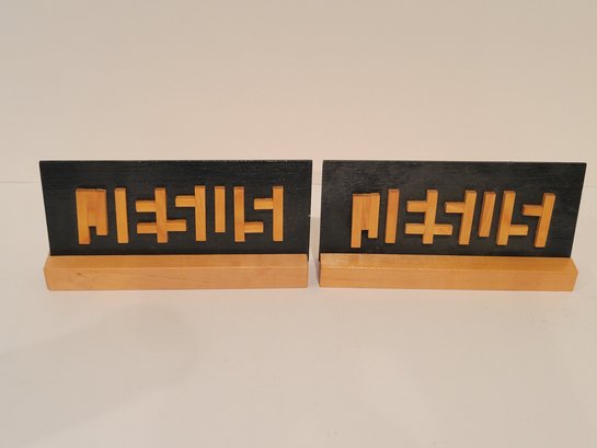 2 Hidden Jesus Optical Illusion Wooden Signs. Measures approximately 3" x 7". Signs can be removed from stand. Pre-owned condition.