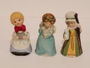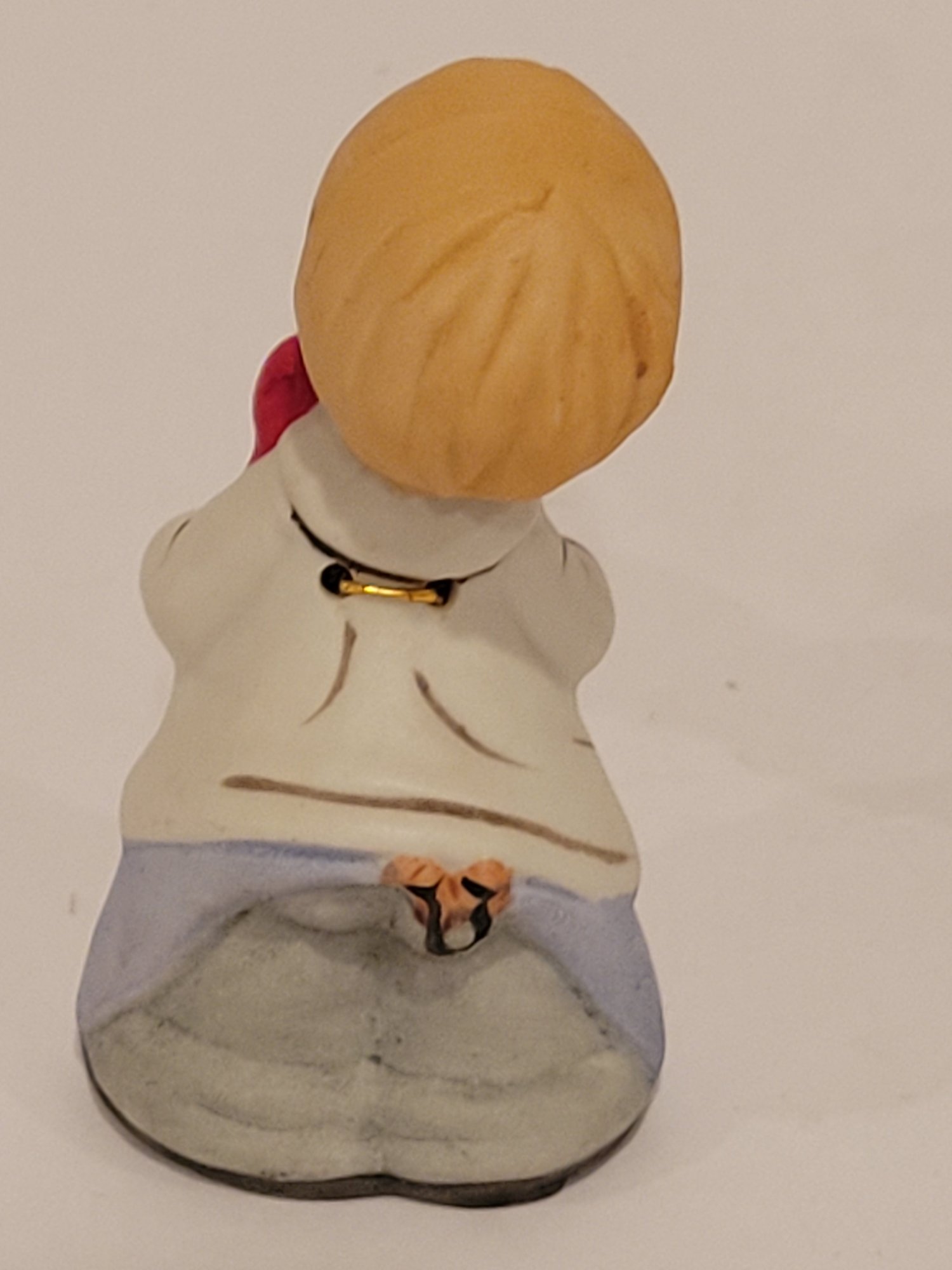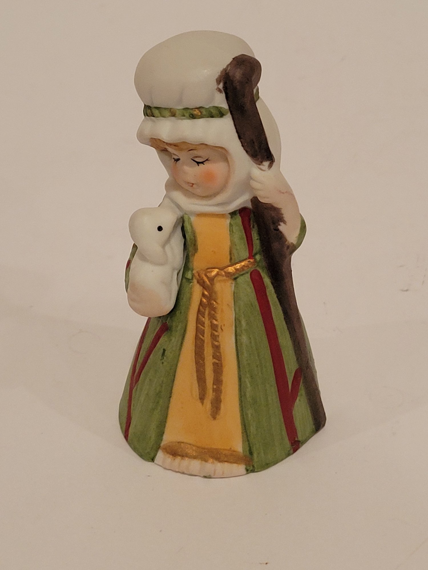 3 Vtg Jasco Bisque Porcelain Bell Figurines. Each measures 4". Includes a shepherd, an angel and a choir boy.