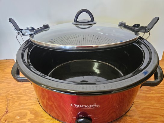 6 Qt Crock-Pot Cook & Carry Manual Slow Cooker has a 6-quart capacity, which serves 7 or more people.