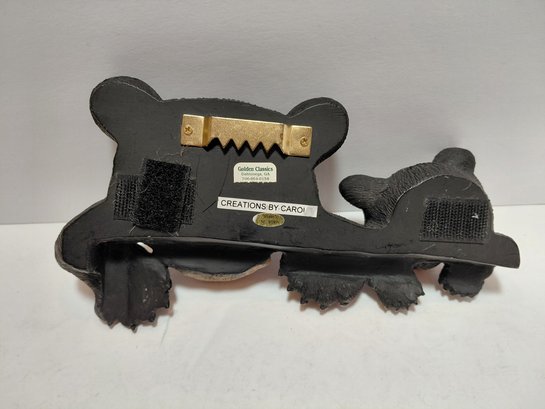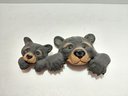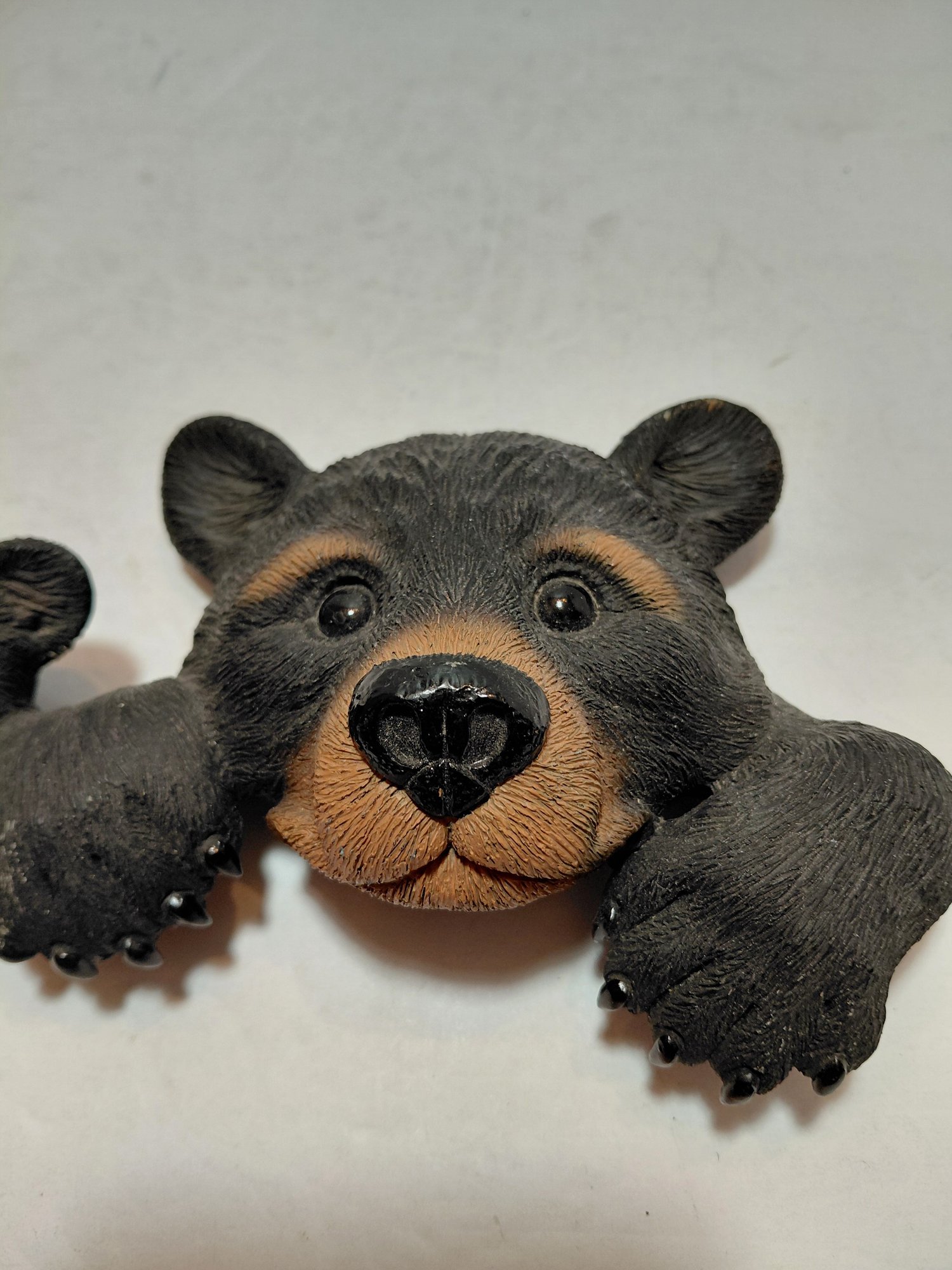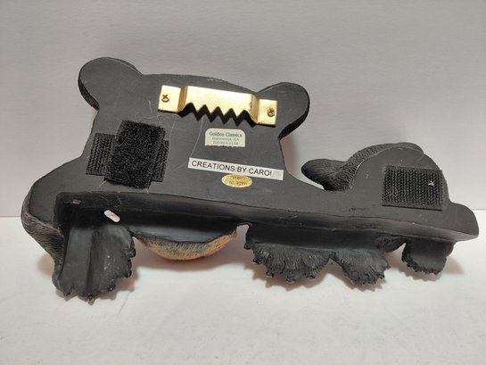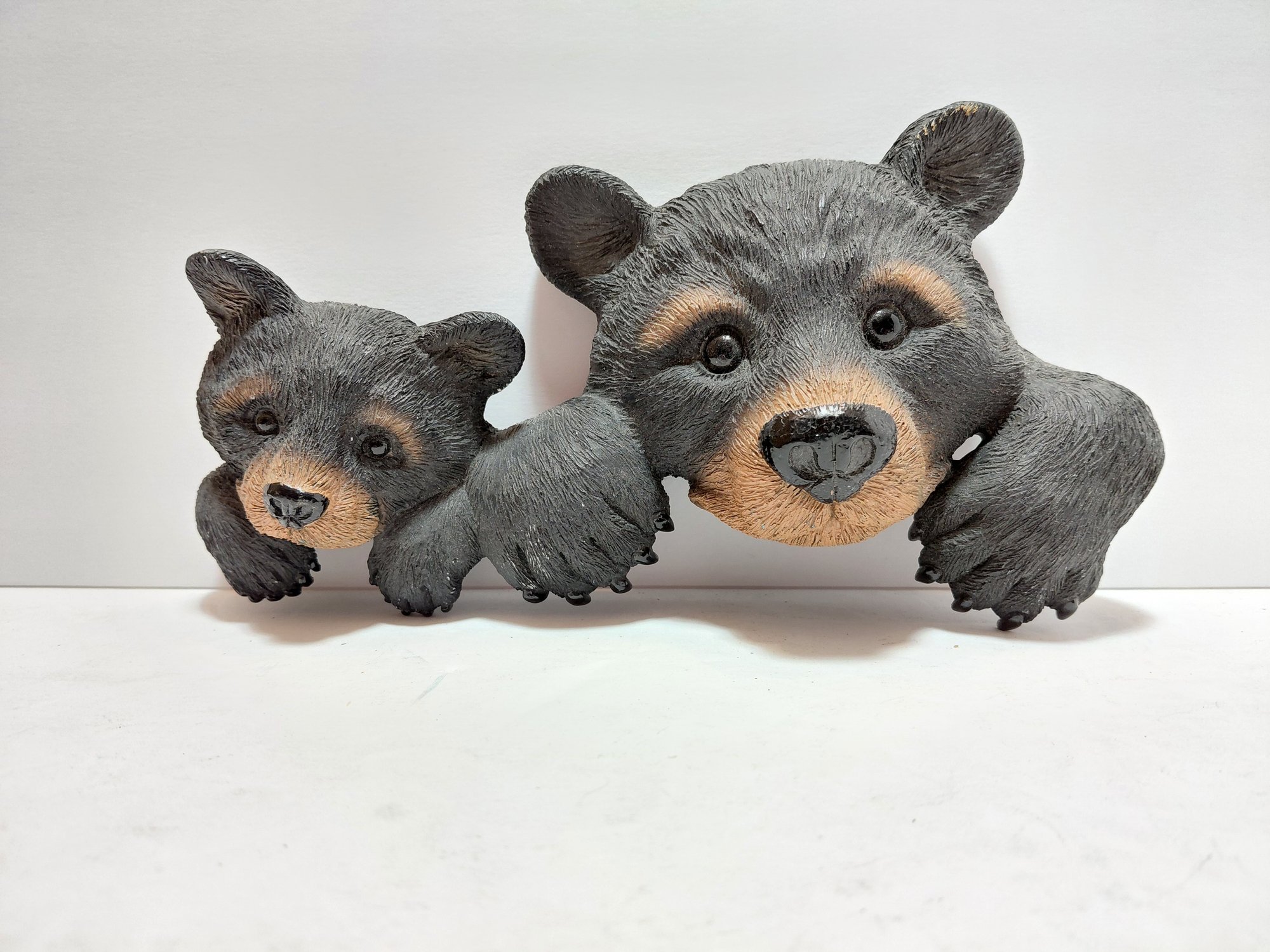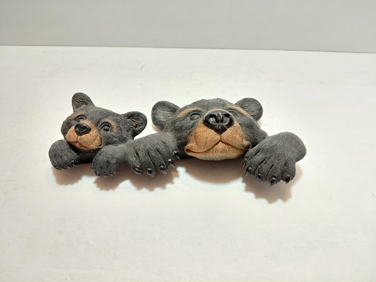 The sculpture features two bear cubs peeking out.