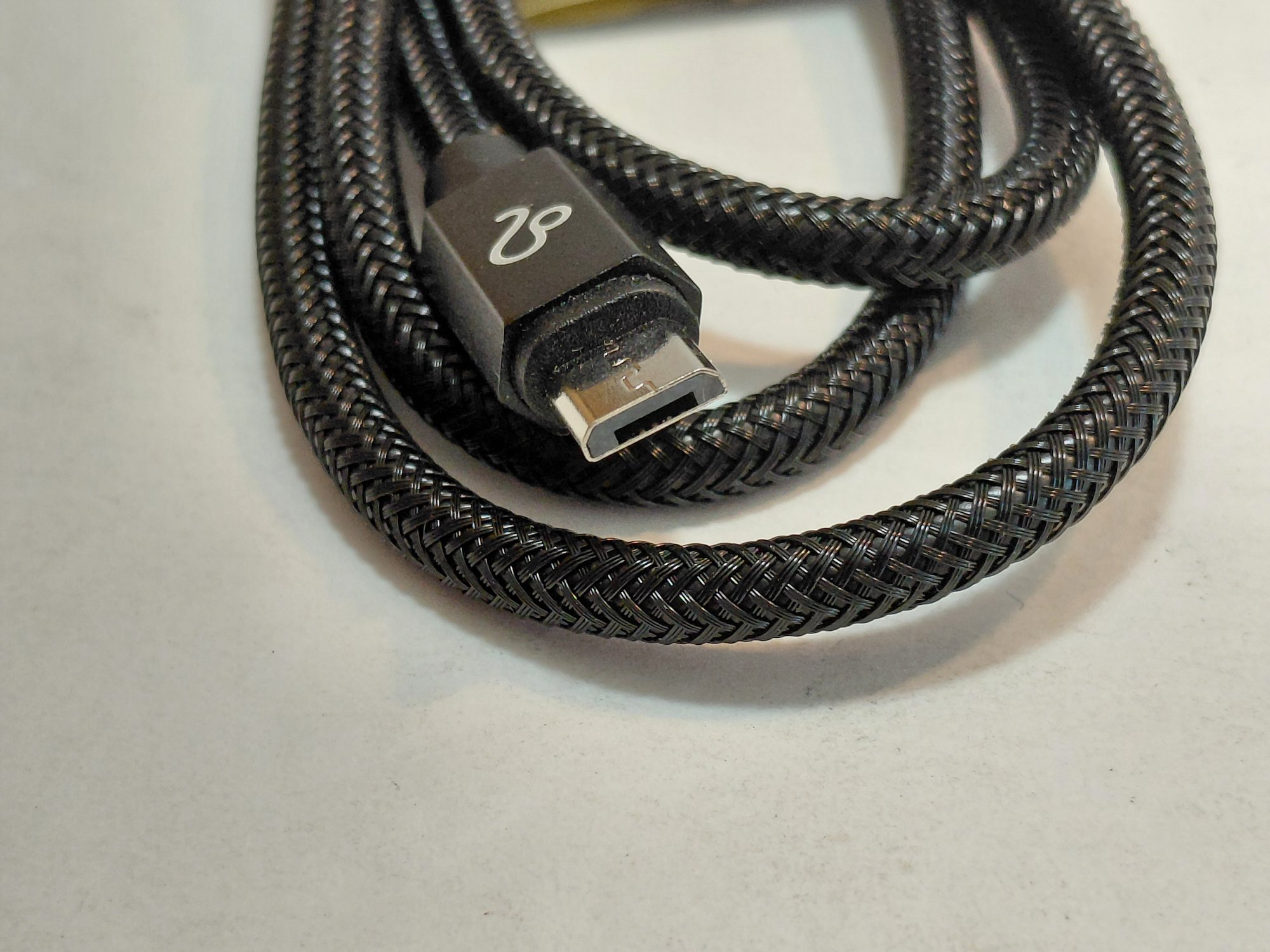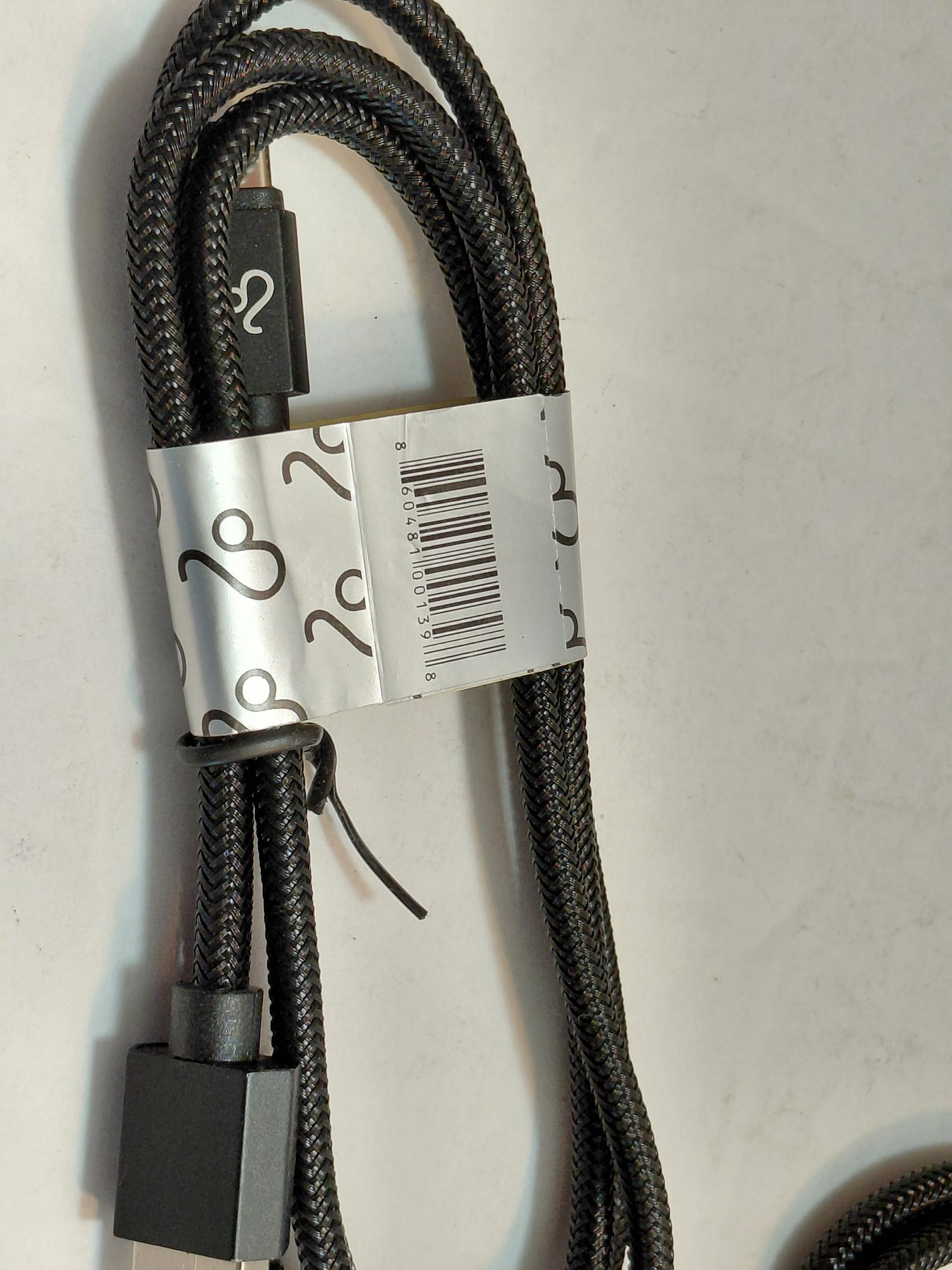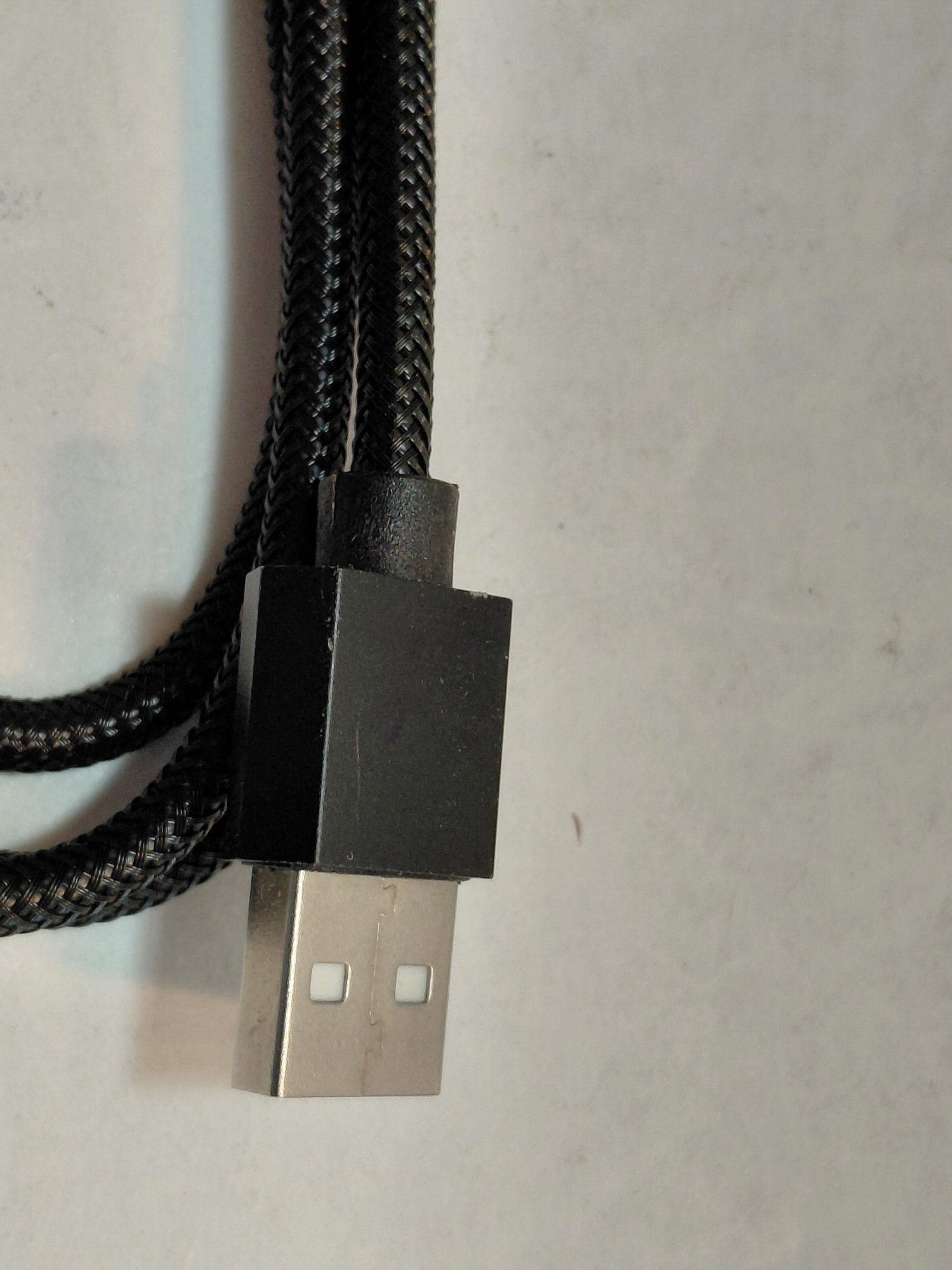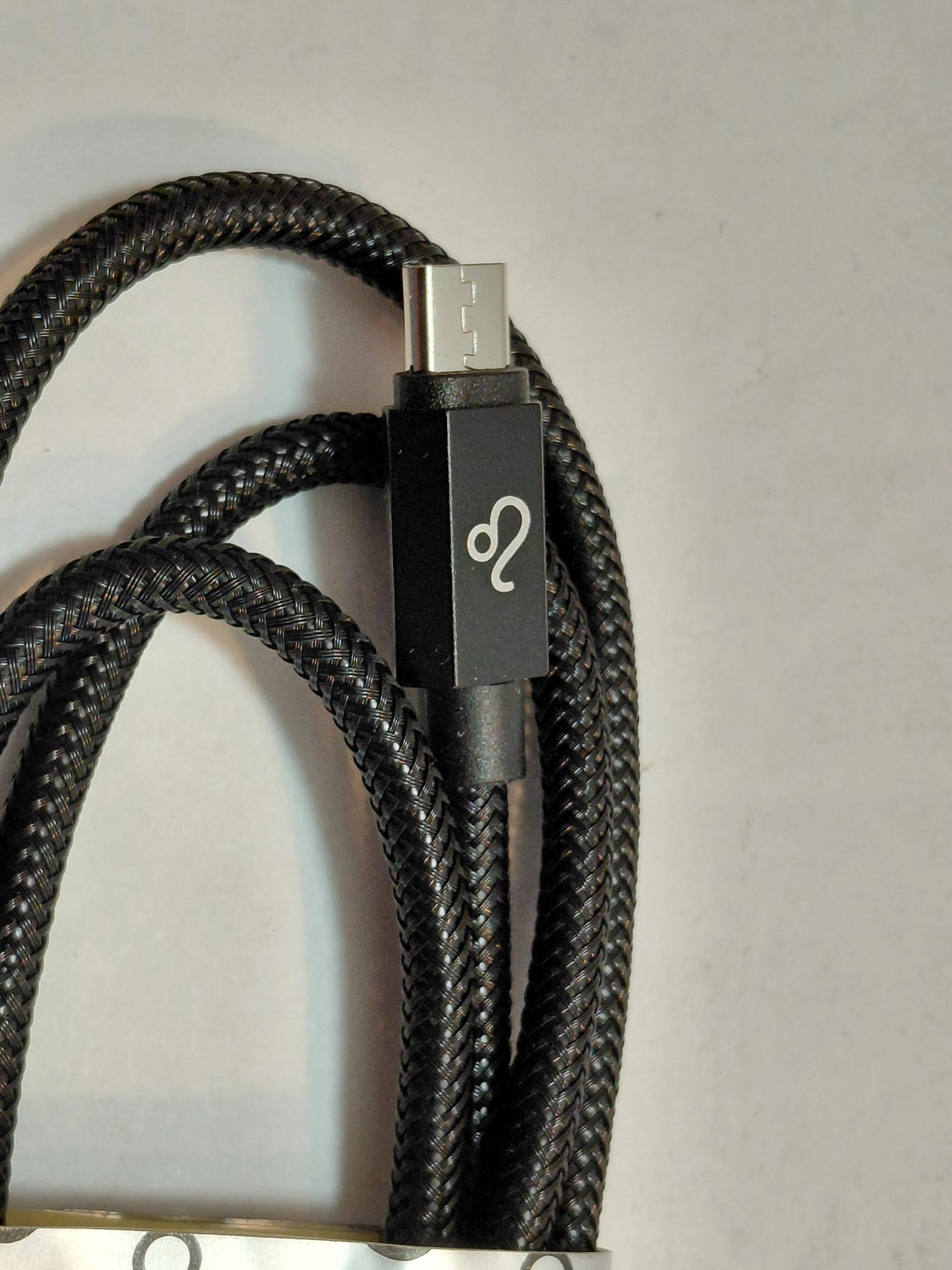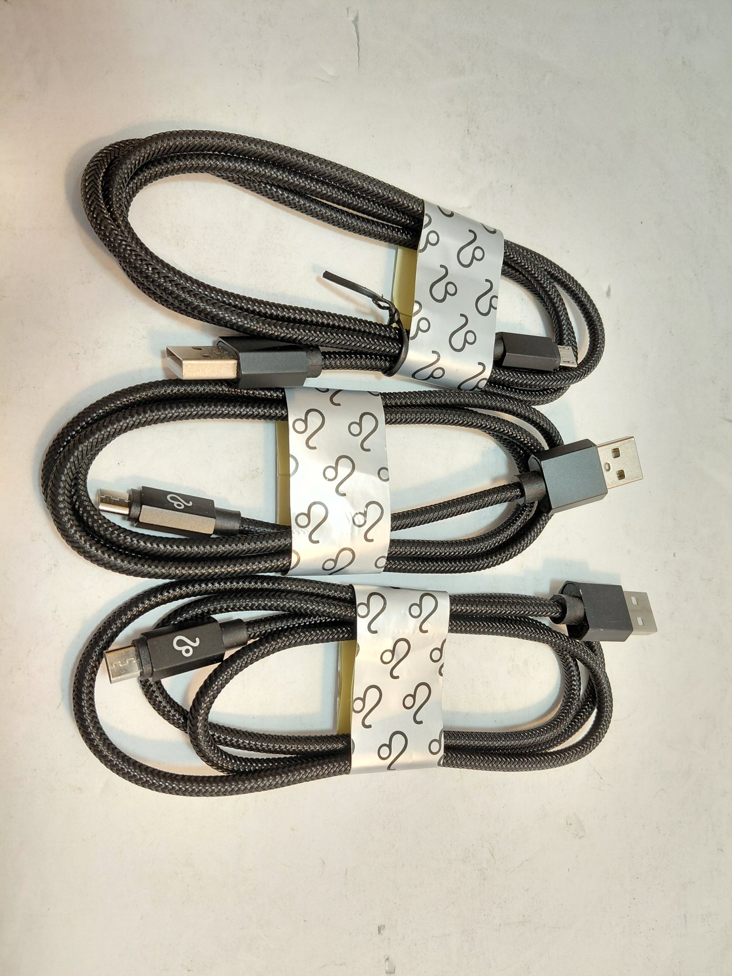 Black nylon braided charging cable, a USB-A to Micro-USB