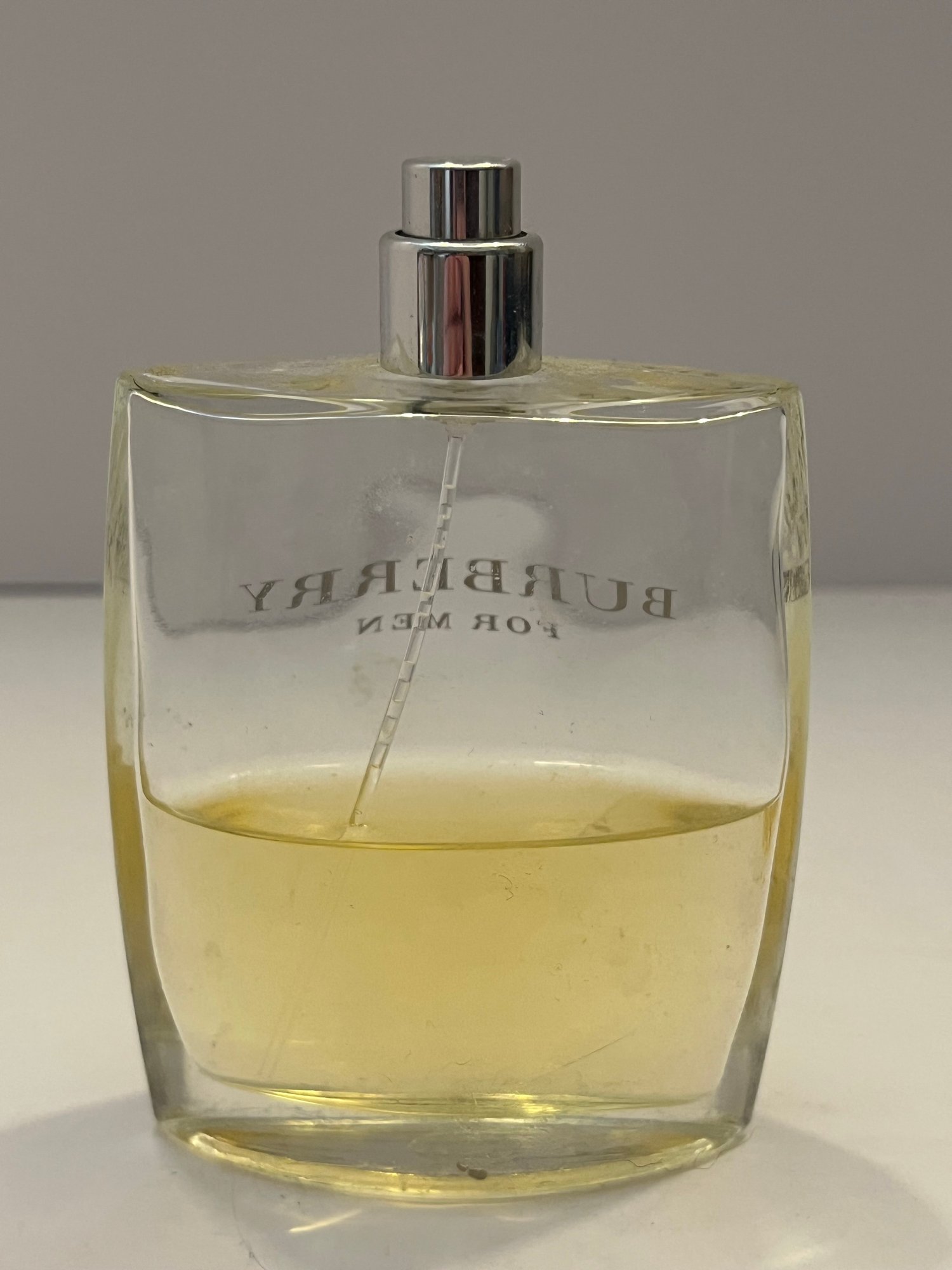 Burberry For Men Eau de Toilette, woody aromatic fragrance for men, first launched in 1995. Top notes include bergamot, lavender, fresh mint, and thyme. Pre owned condition.
