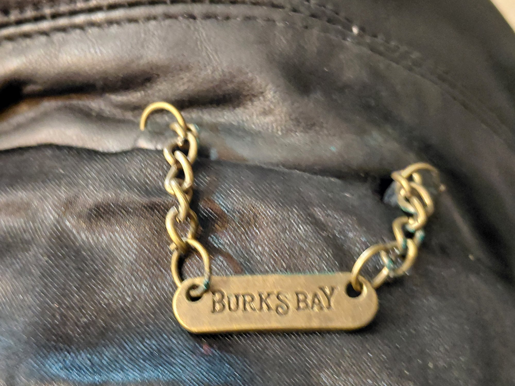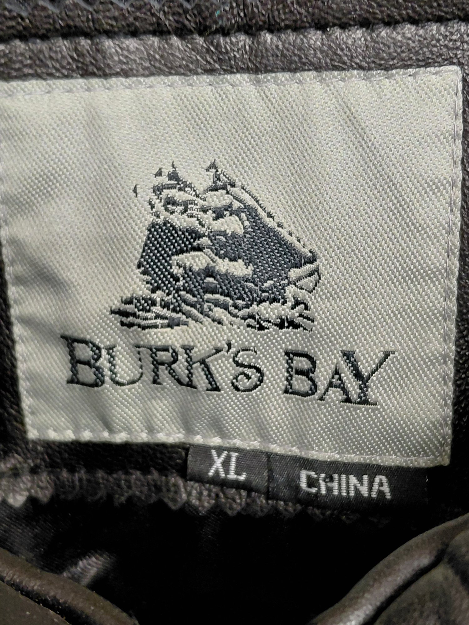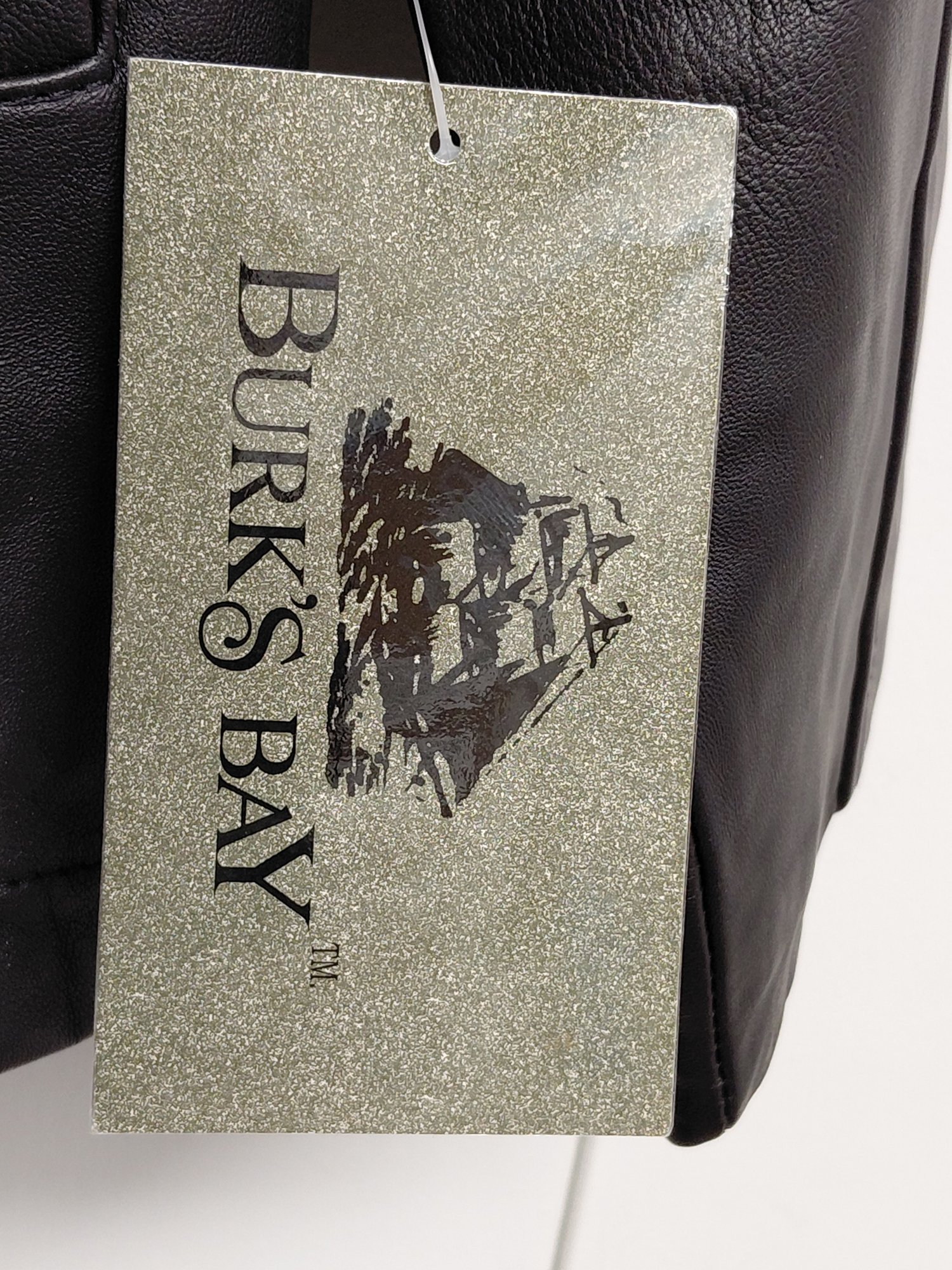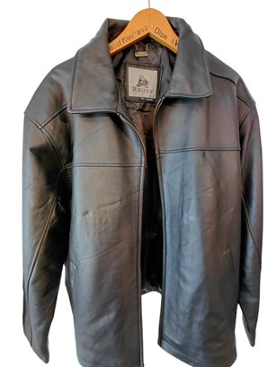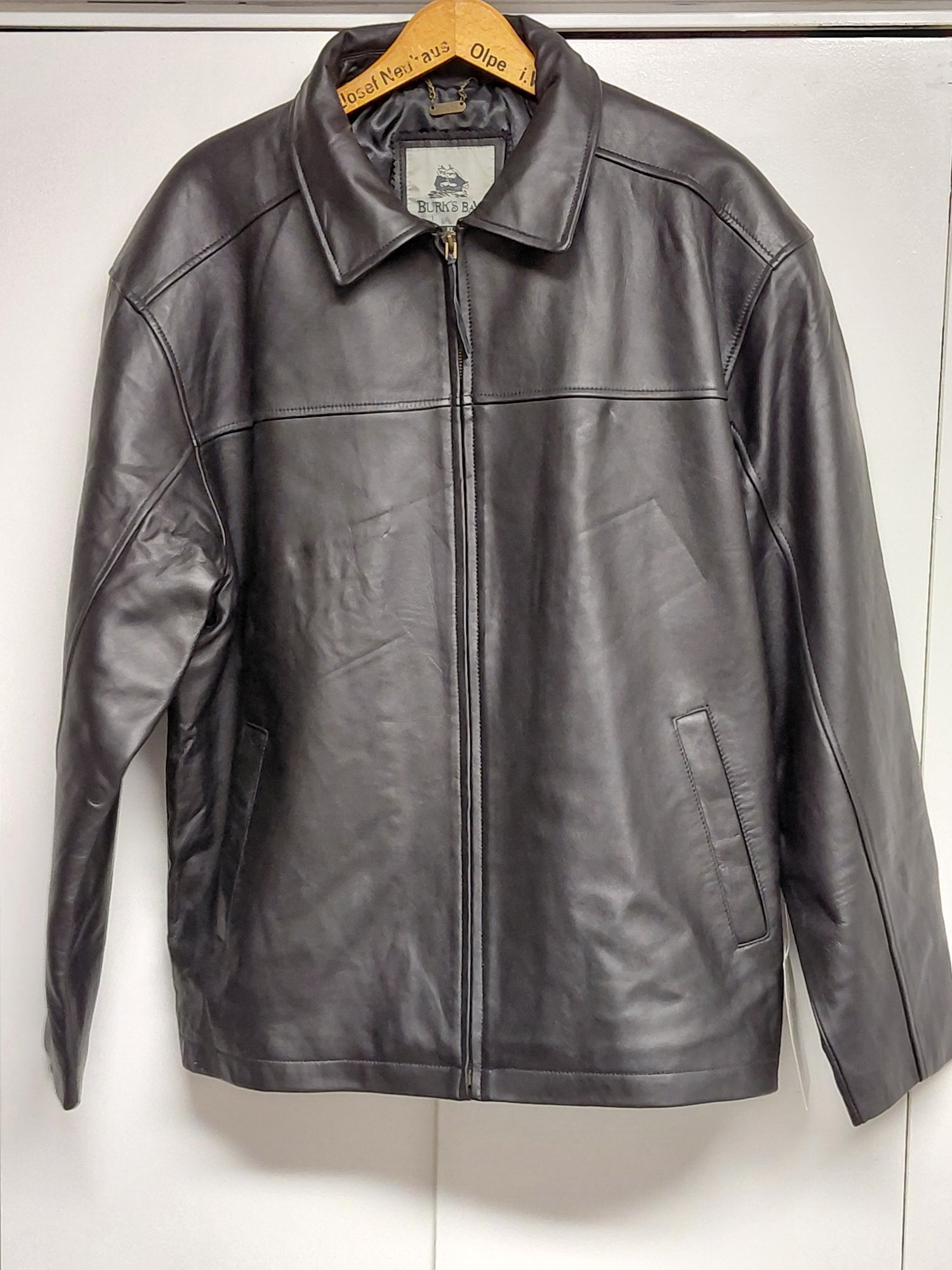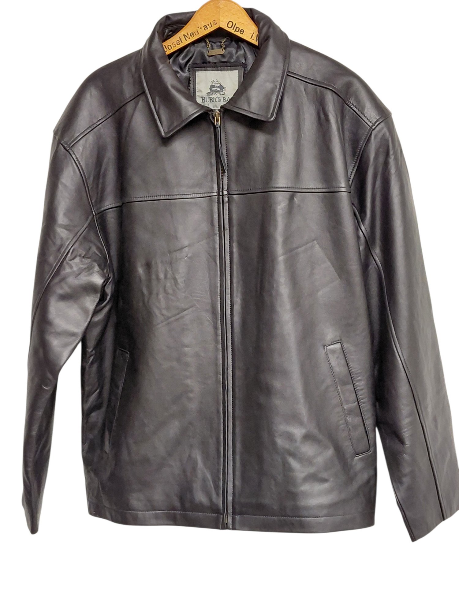 Burks Bay brand men's black leather jacket.