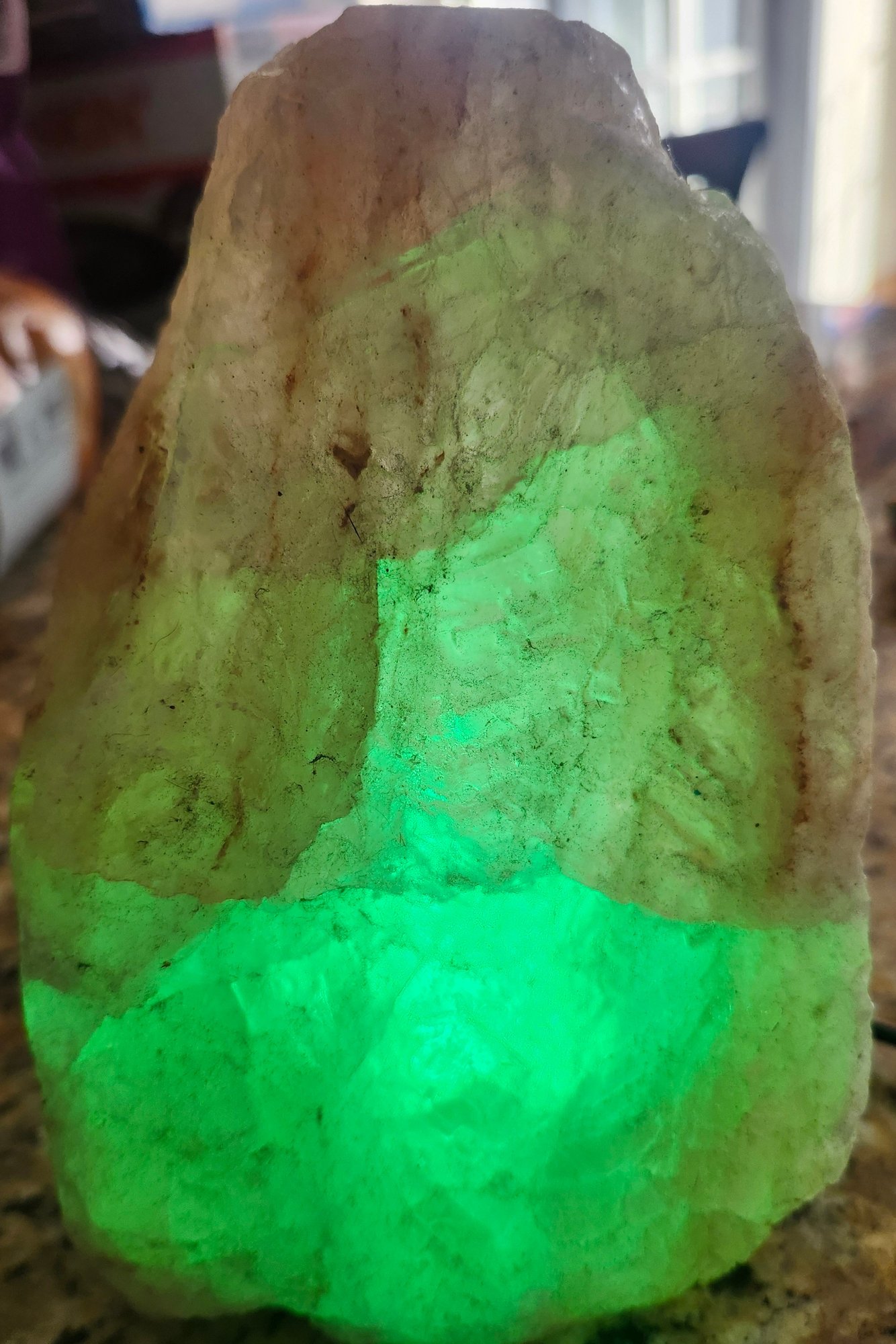 Changes colors between Orange, blue, pink, green