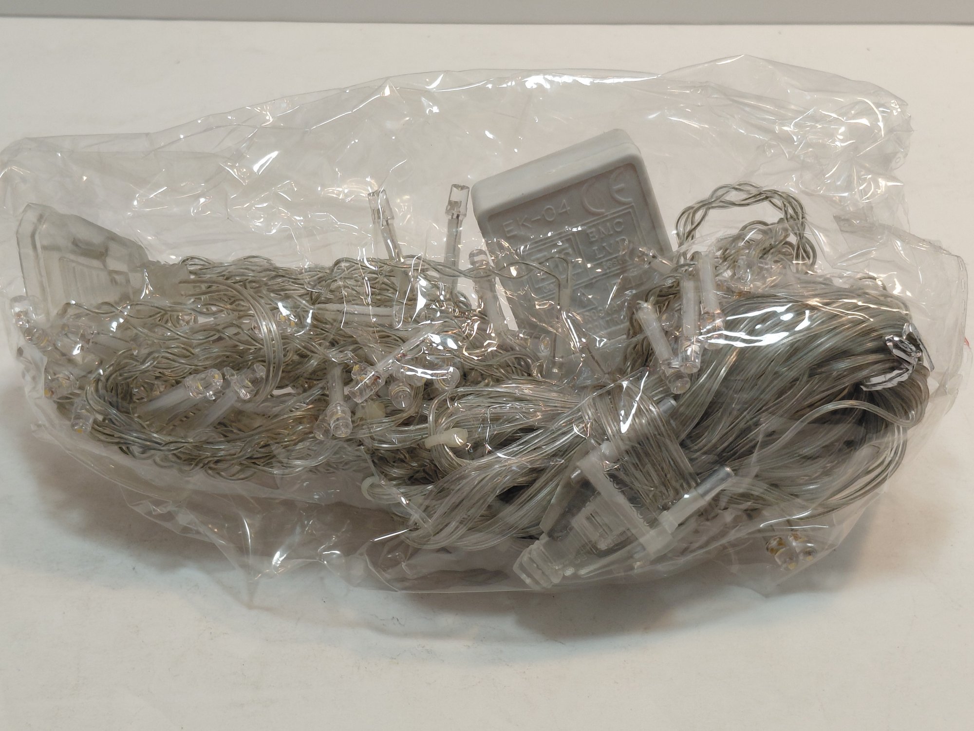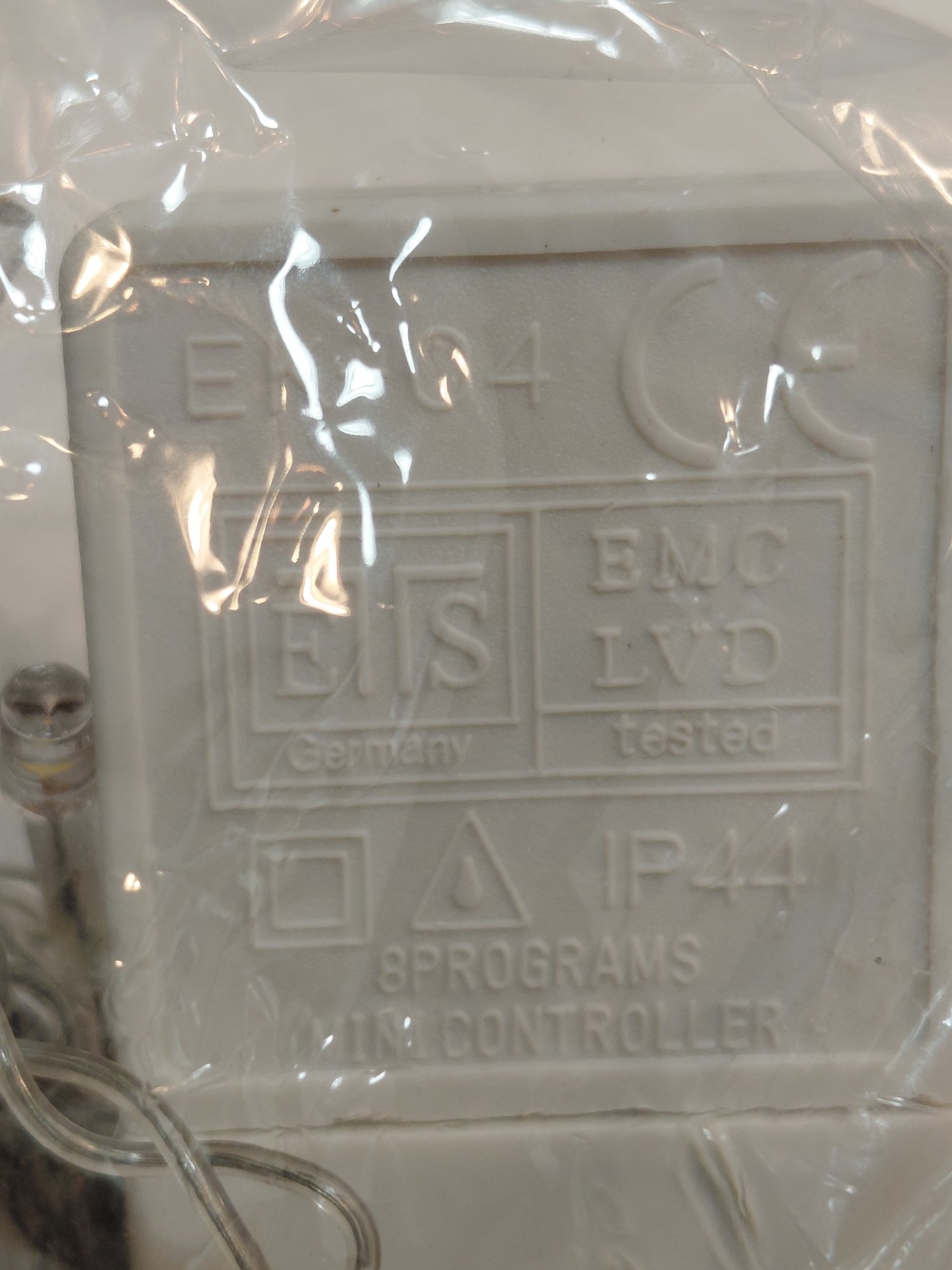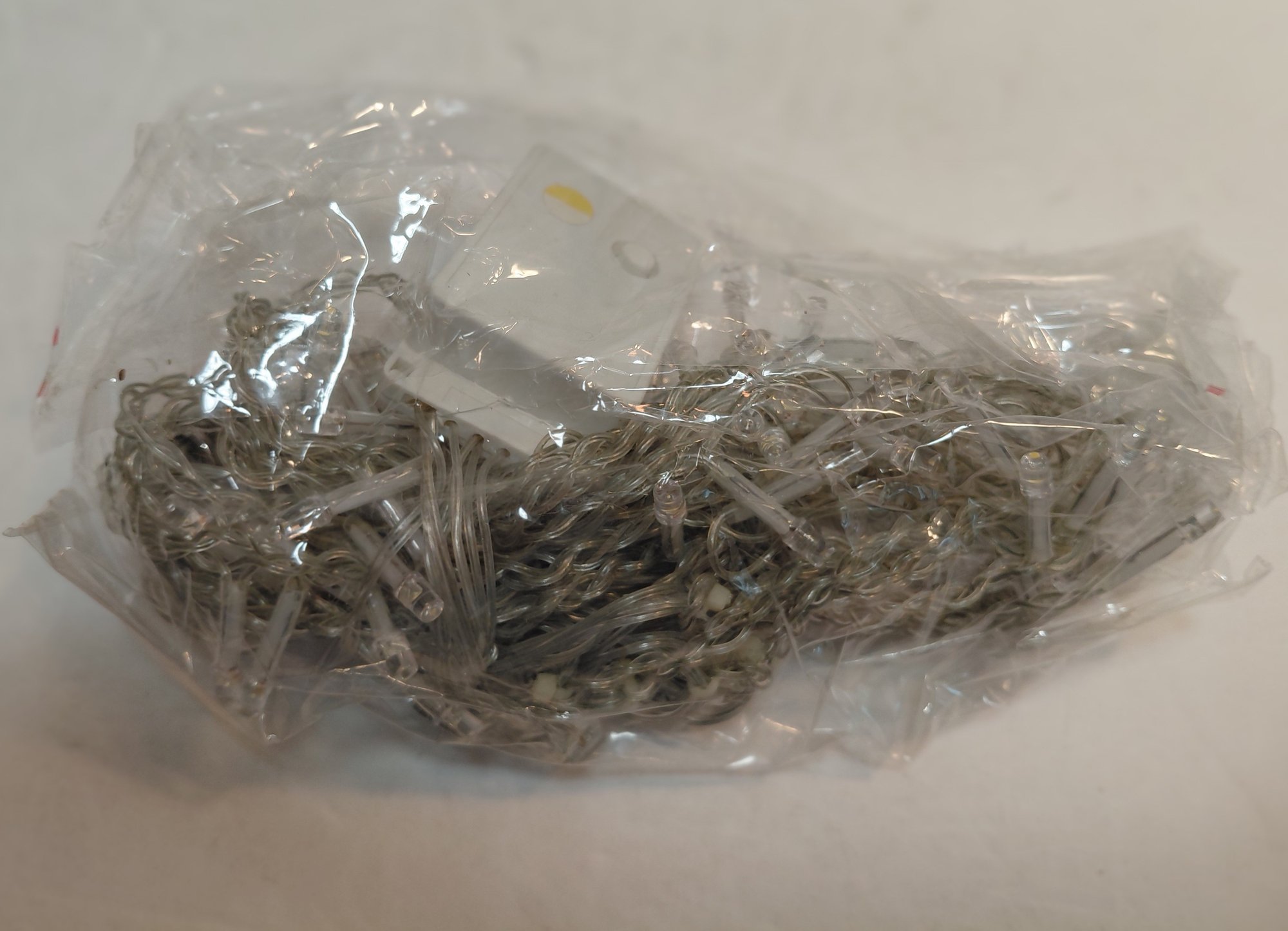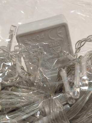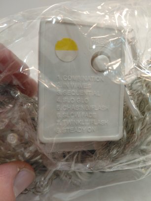 Decorative LED string lights or fairy lights, often used for holiday or event decorating, featuring a controller with multiple lighting modes such as flashing, fading, and steady on.