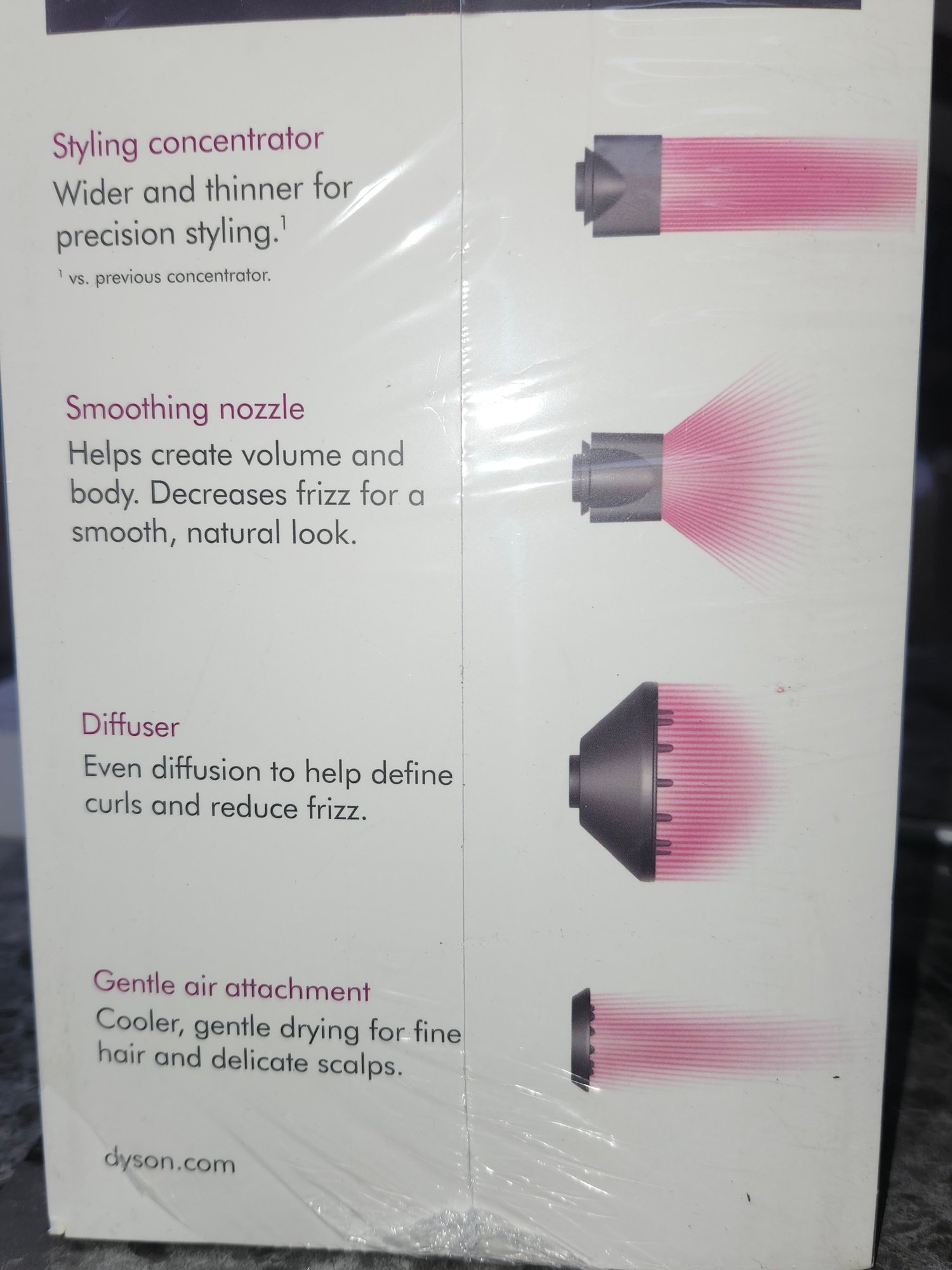 Attachments are styling concentrator, smoothing noozle,diffuser,gentle air Attachments, flyway attachment.