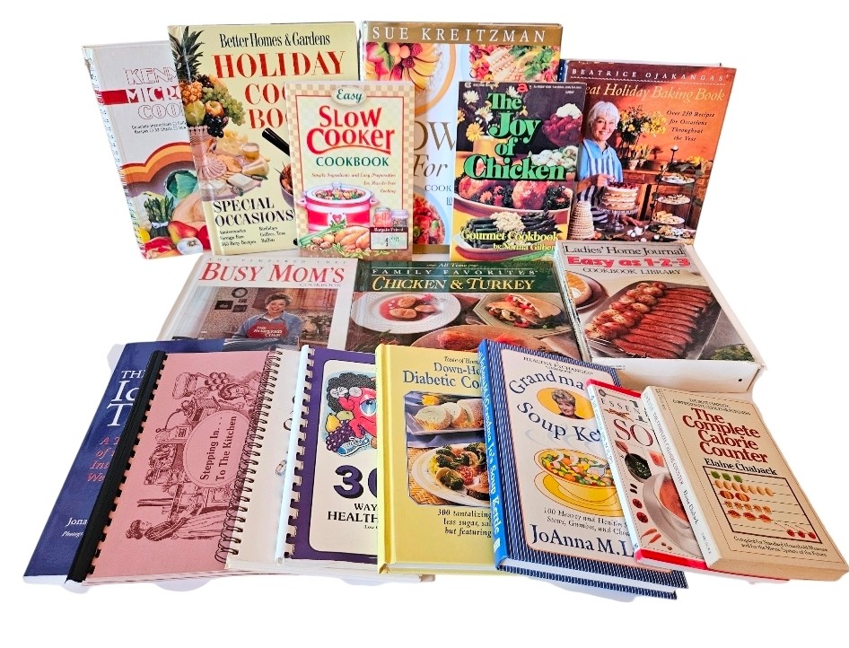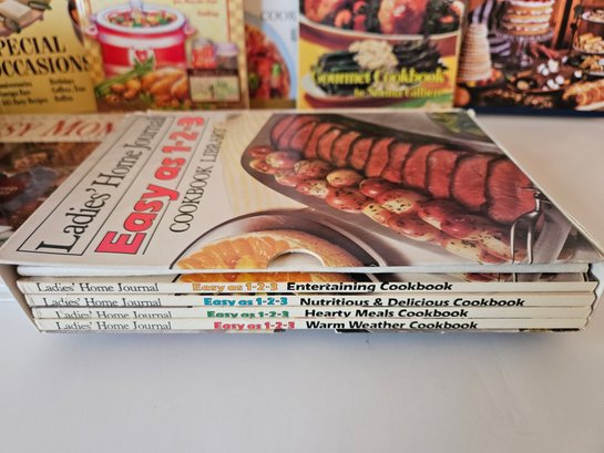 Huge Lot of 20 Cookbooks. Includes Kemmore Micowave Cooking, Better Homes and Gardens Holiday Cook Book, Easy Slow Cooker Cookbook, The Joy of Chicken and many more! The Ladies Home Journal Easy as 1-2-3 Cookbook Library includes 4 books in the box set. Pre-owned condition.