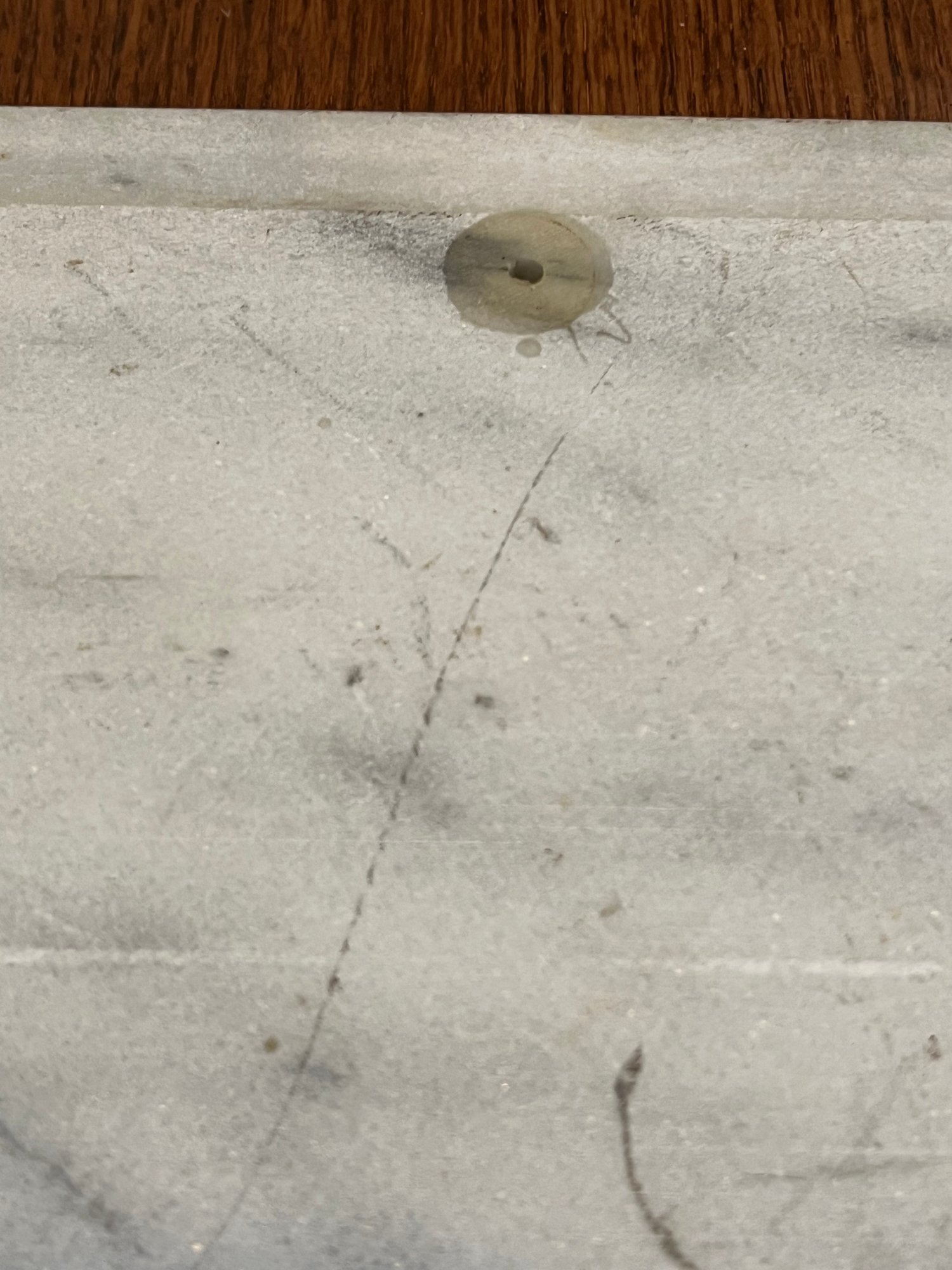 Large White Marble Pastry Board. Comes in a White and Grey marble design, measures approximately 16”x 20”. Comes with feet on the bottom, a few are missing. Pre owned condition, may need to be cleaned.