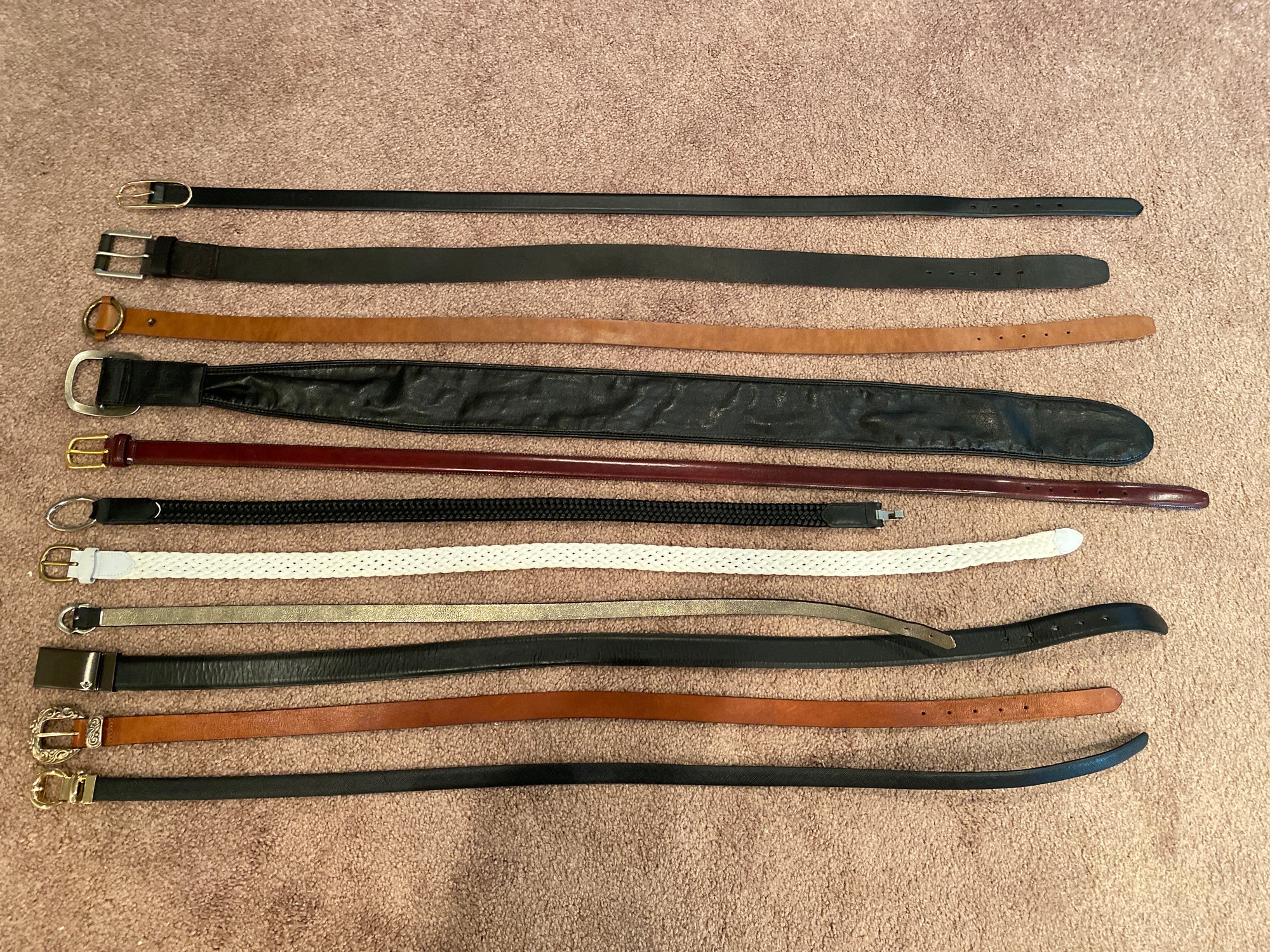 Lot Of Assorted Mens And Women’s Belts. All different styles, shapes, colors and sizes. All pre owned condition.