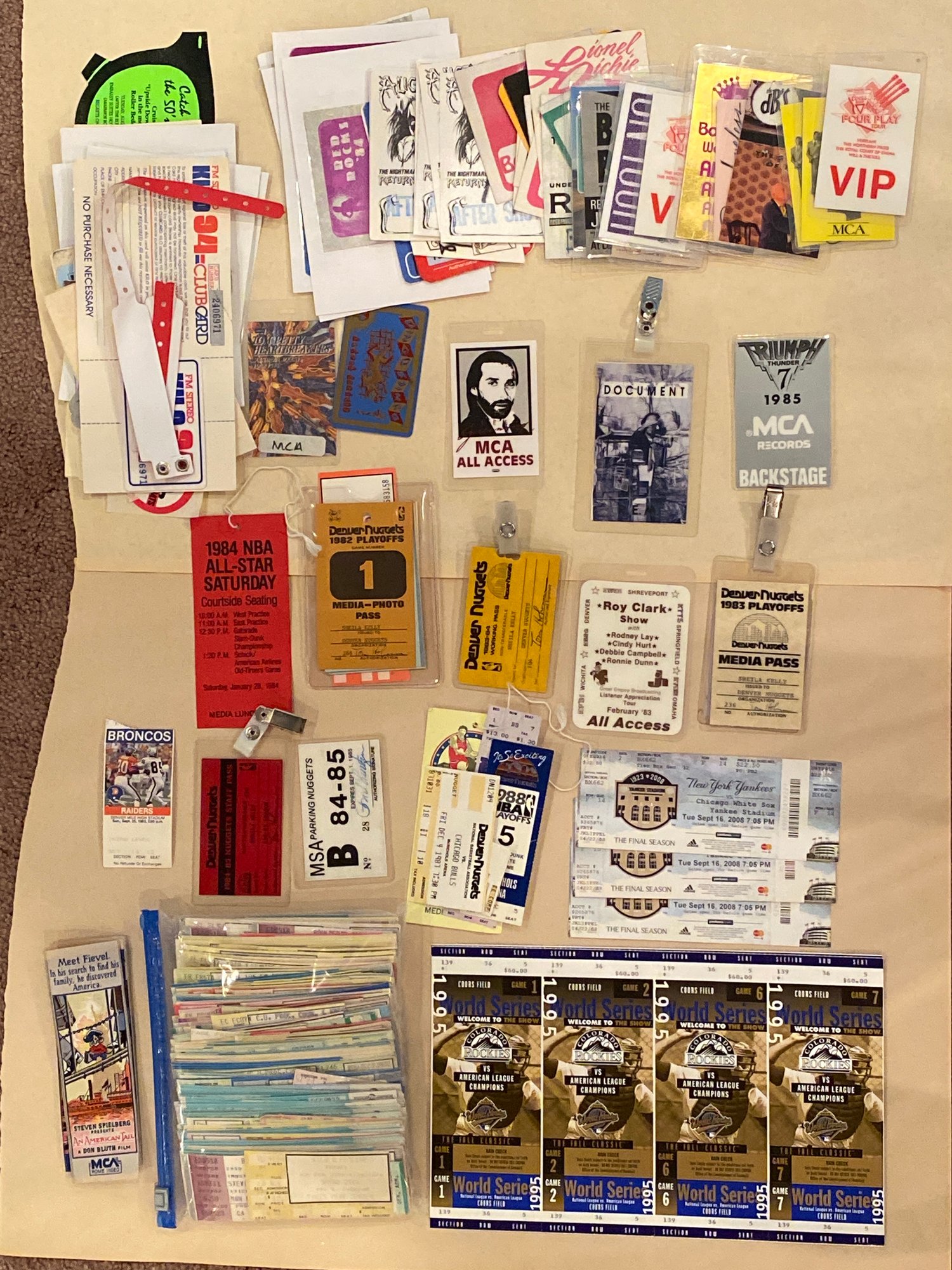 Lot Of Various Tickets including 1 baggie of misc. tickets, 1 page of world series Colorado Rockies tickets,3 New York Yankees vs. White Sox tickets and a lot of random passes and tickets for various different events. All pre owned condition.