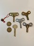 Lot Of Wind Ups And Coins. Includes 4 toy wind uppers, 1 random key and 2 arcade play coins. All pre owned condition.