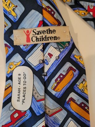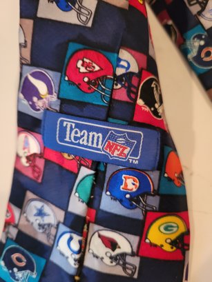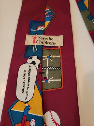 Novelty Team NFL and Save The Children's Ties. Features printed patterns related to sports, travel and football teams. Pre-owned condition.