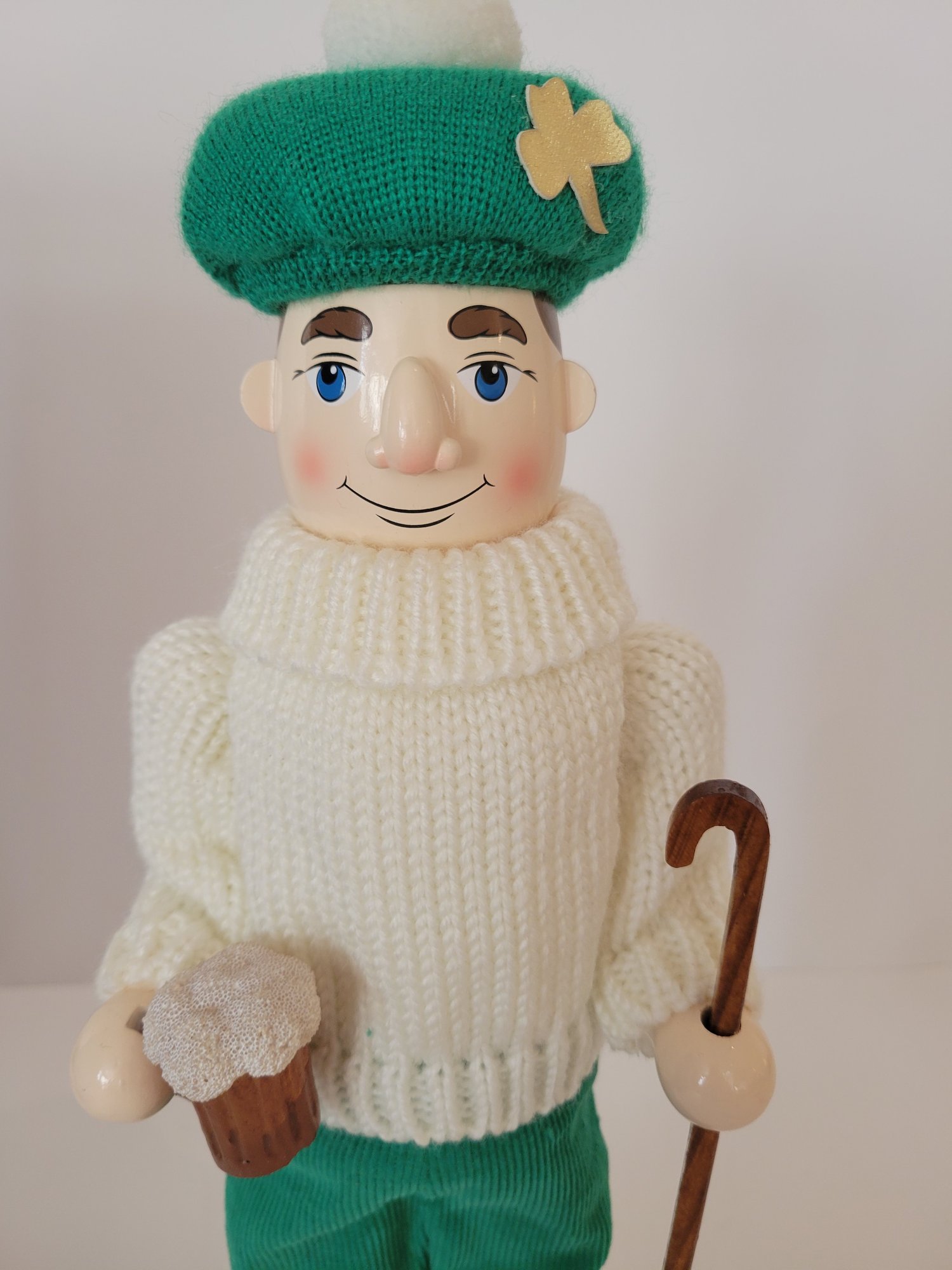 Irishman Shepherd Nutcracker from the Nutcracker Village. Measures approximately 14". This is a collectible piece depicting St.Patricks Day or Irish Themed Christmas Decor. Pre-owned condition. Comes in original box.
