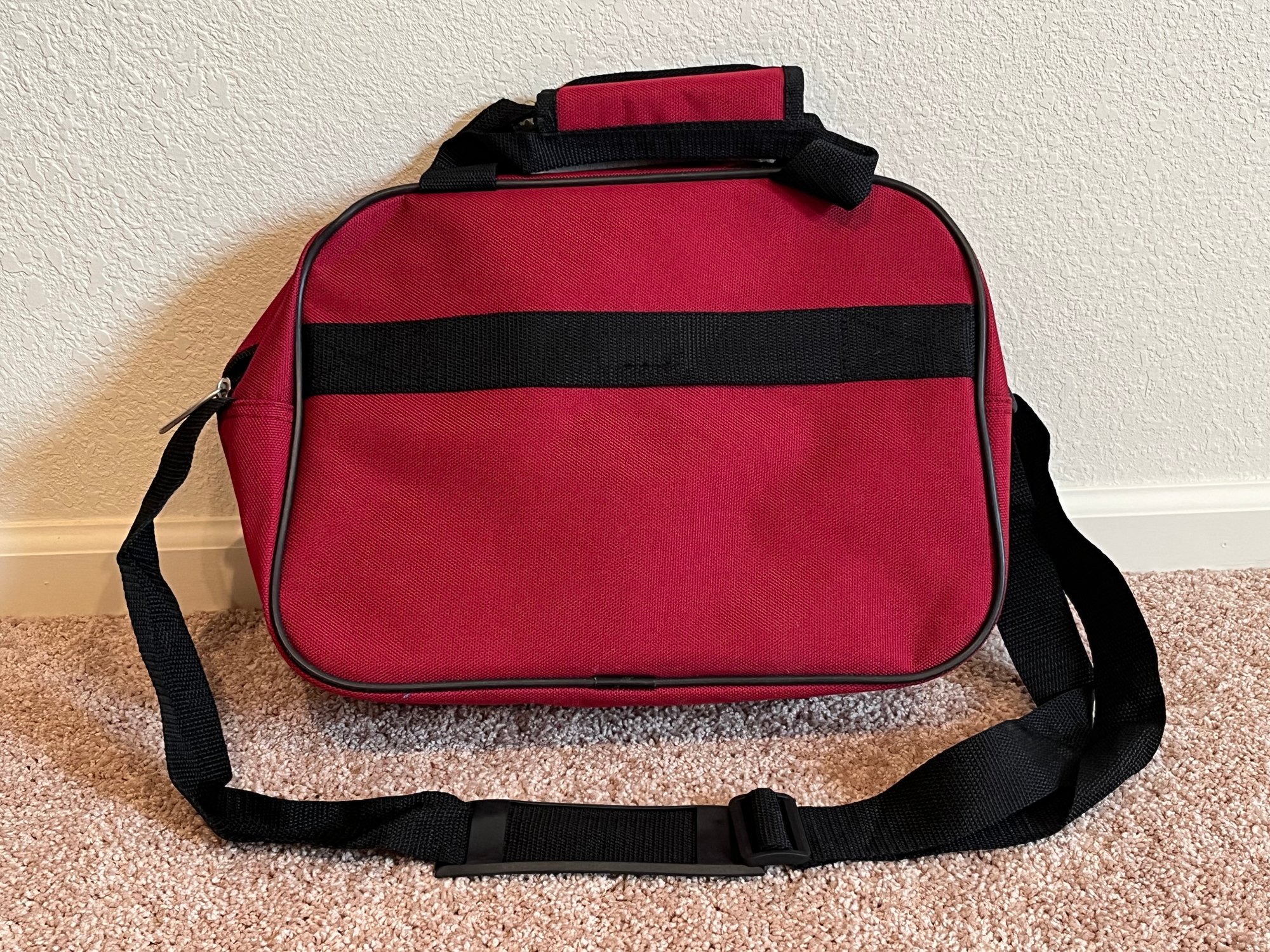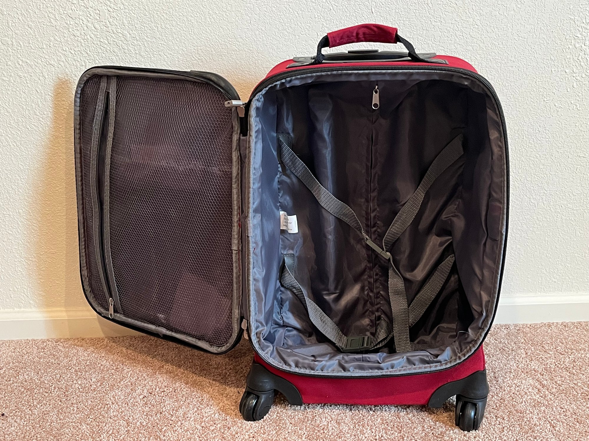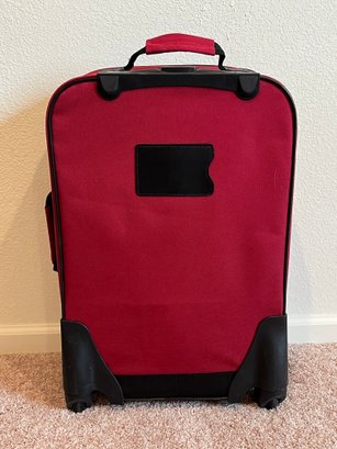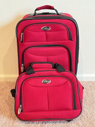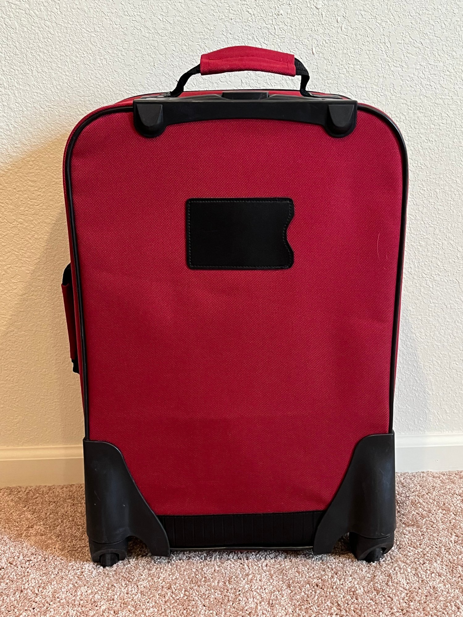 U.S. Traveler Rio 2-piece expandable carry-on luggage set. Features smooth and quiet rolling wheels with corner protectors for easy portability and durability over curbs and stairs. Including 1 smaller 11”x 14” carry travel bag and a 15”x 20” expandable rolling suitcase nothing coming in a red canvas like material. Both pre owned good condition .