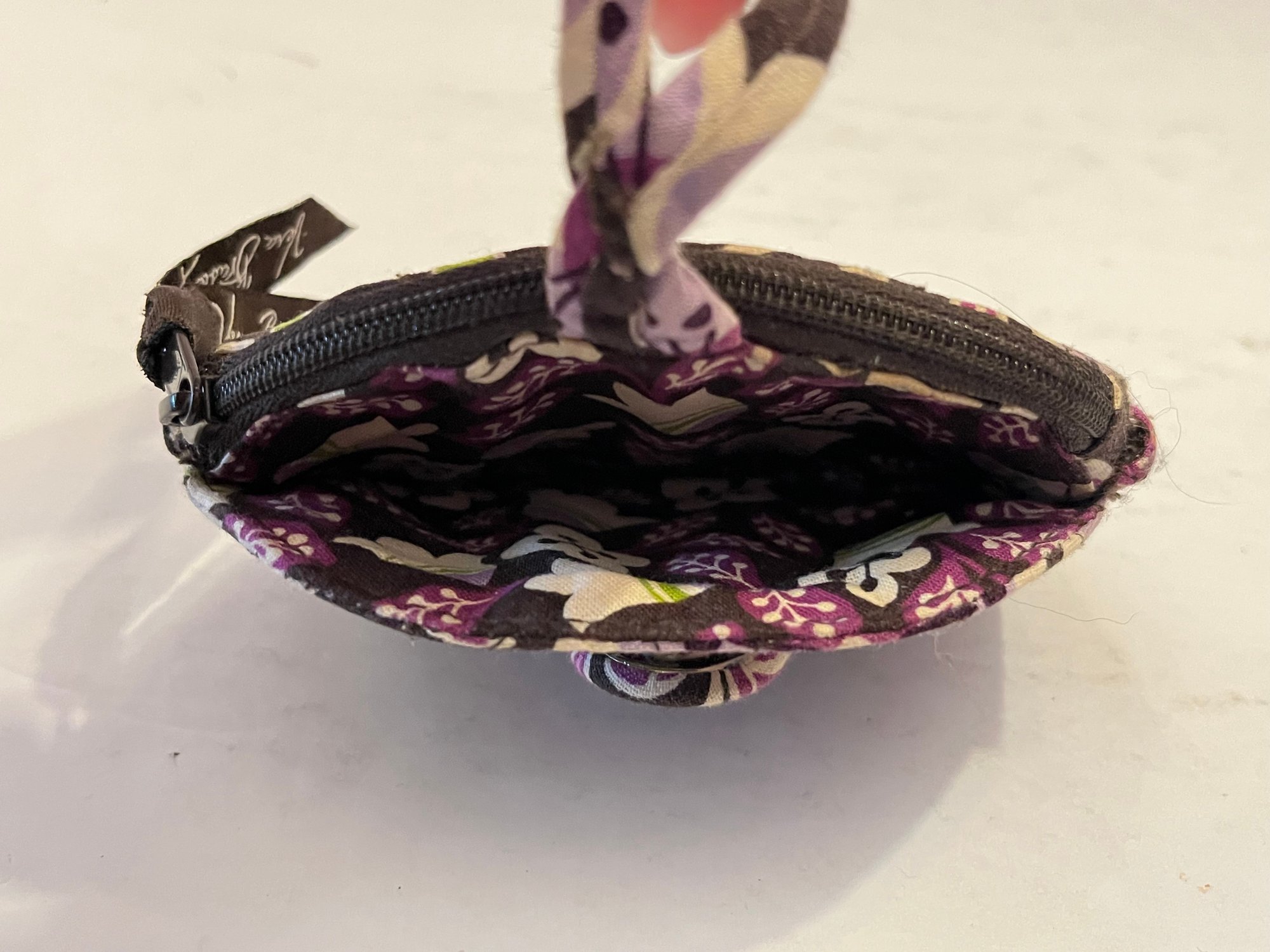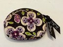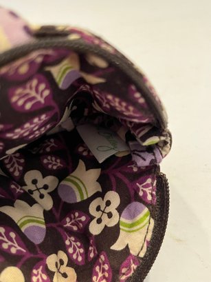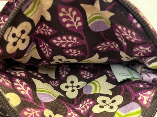 Vera Bradley small zippered coin pouch in the Plum Petals pattern. Features 1 bigger zipper pocket and 1 button closure front pocket. Measures approximately 4.5”. Pre owned condtion.