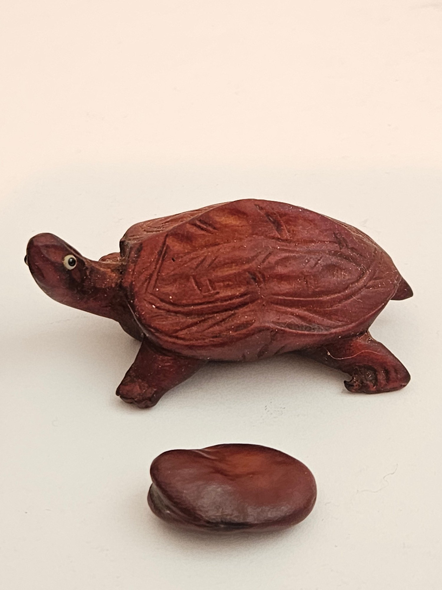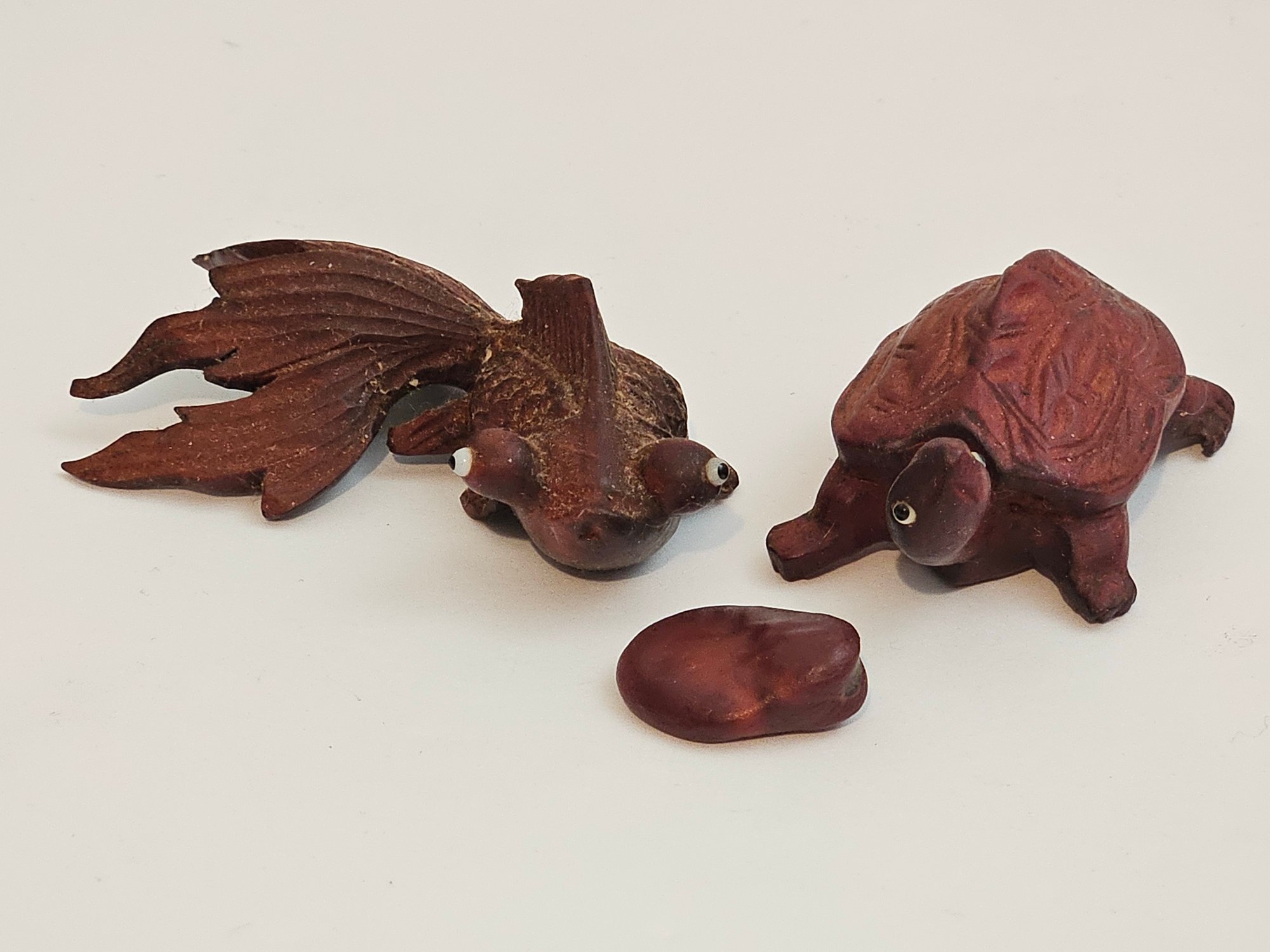 Goldfish/Koi: A hand-carved fish sculpture often featuring glass eyes, symbolizing good fortune, love, or friendship.