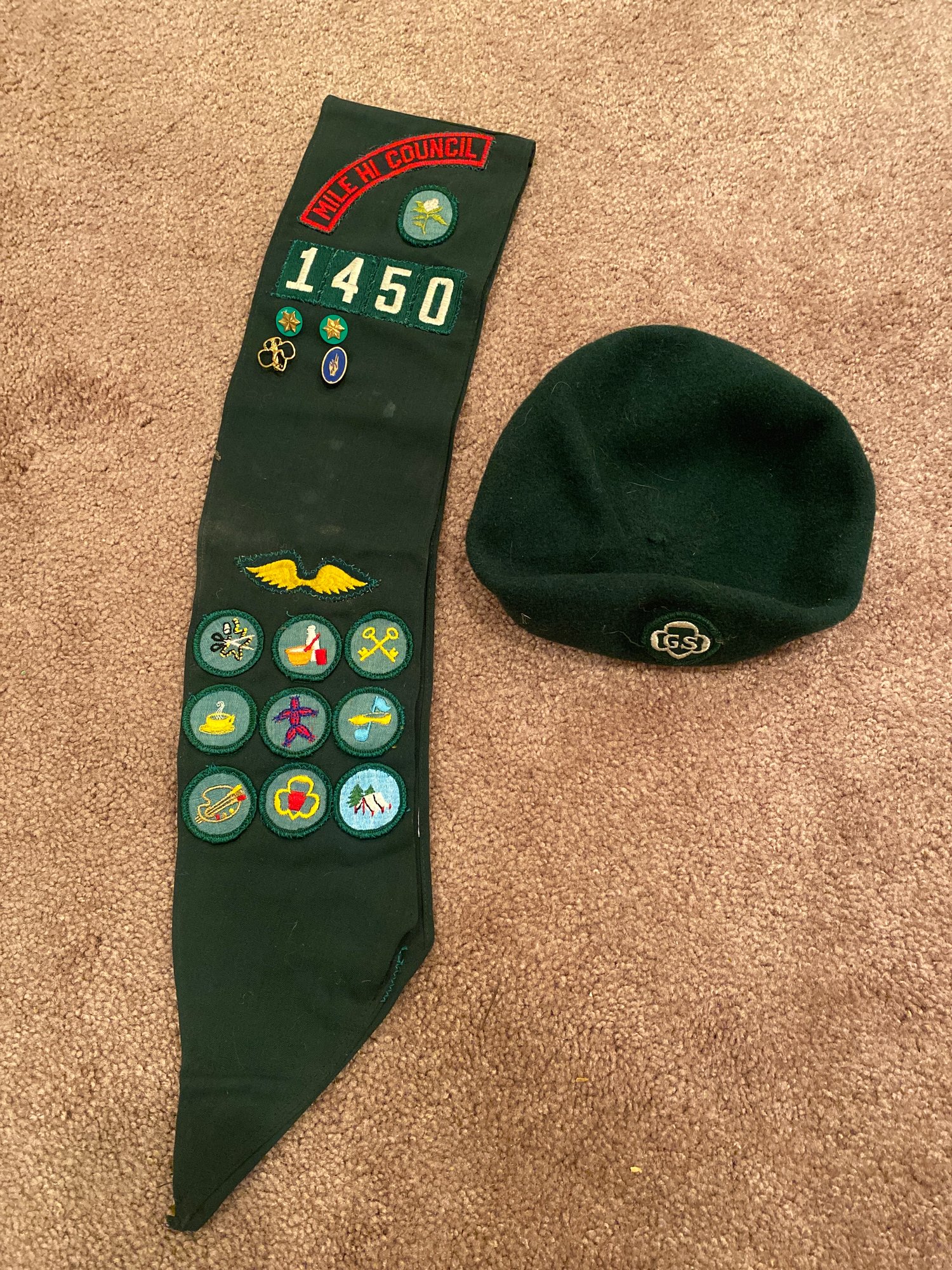 Vintage Girl Scout Patch Sash And Hat. Pre owned condition.