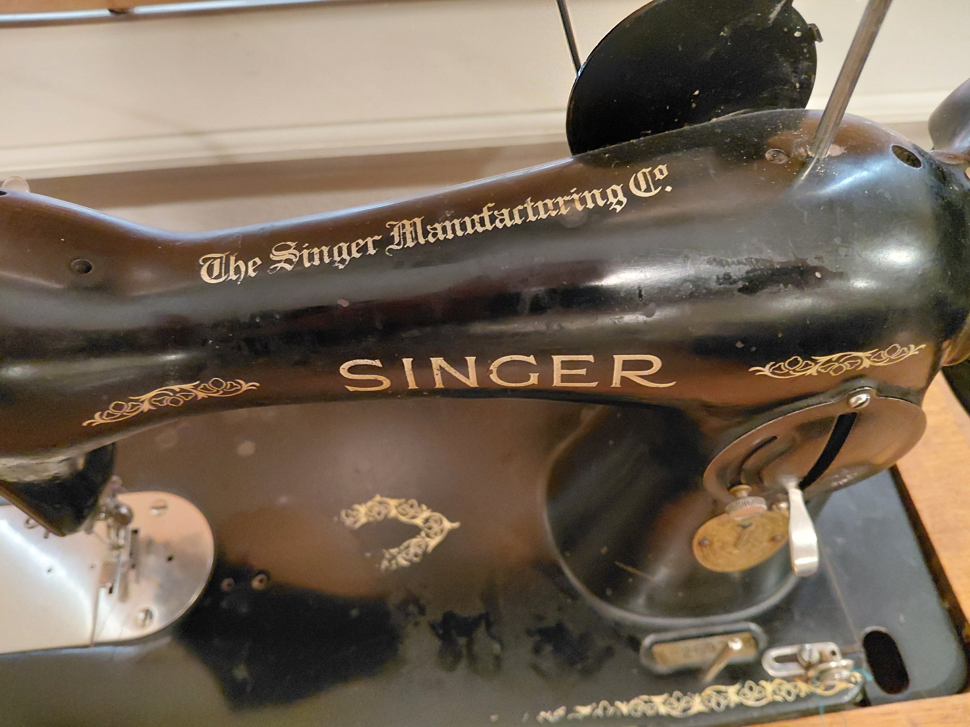 Functionality: The sewing machine is designed to flip over and conceal inside the wooden cabinet, allowing the top to be used as a table or desk.