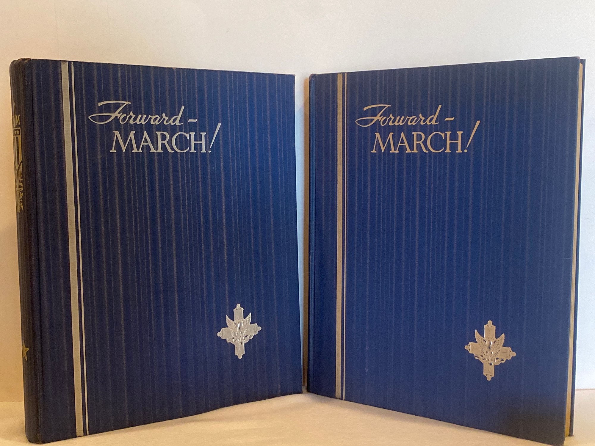 Volumes 1&2 Of Forward March, the photographic record of America in the world war and the post war social upheaval. Copyright MCMXXXIV-V (1934). Pre owned condition.