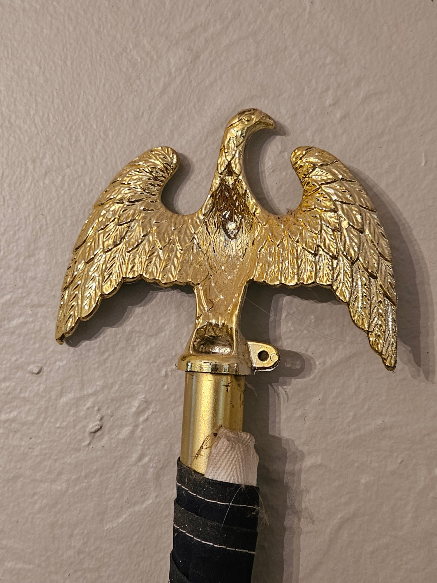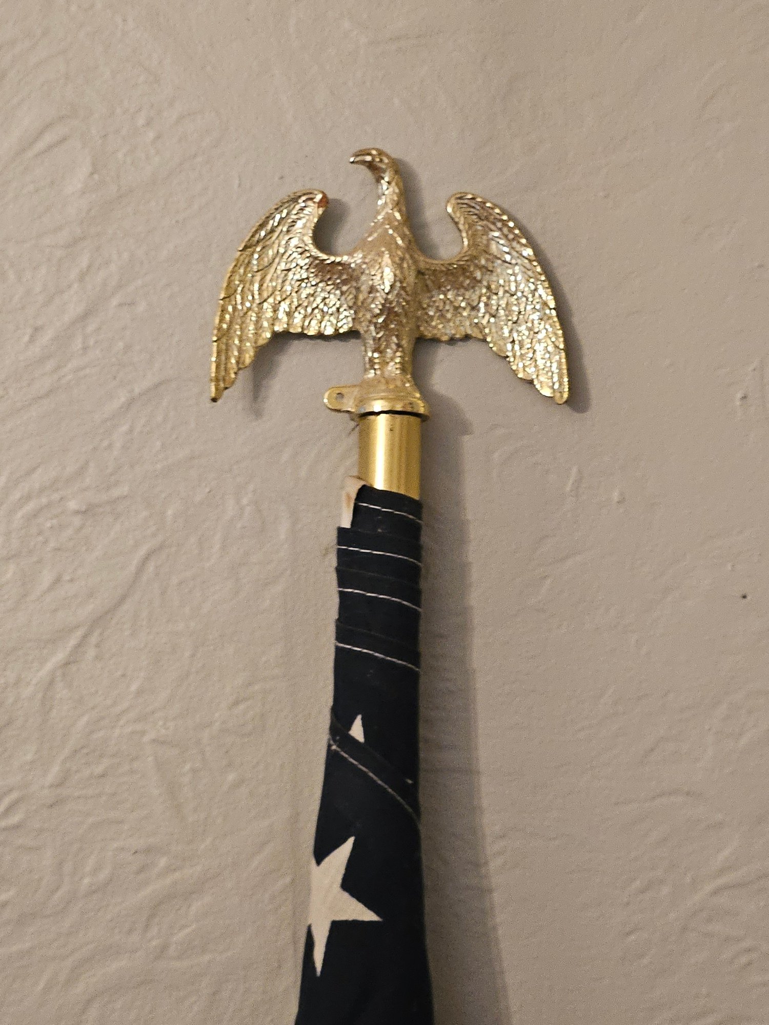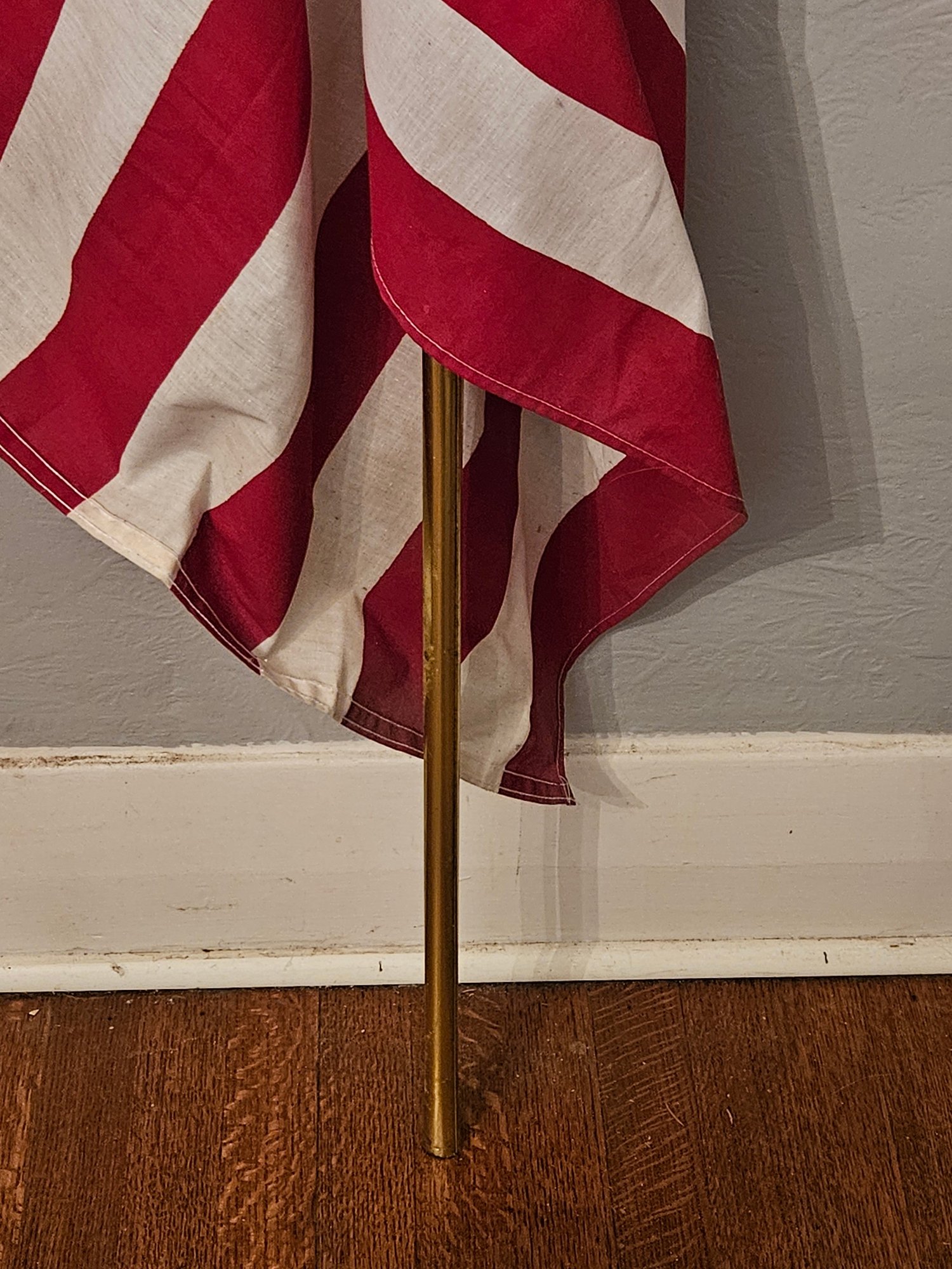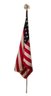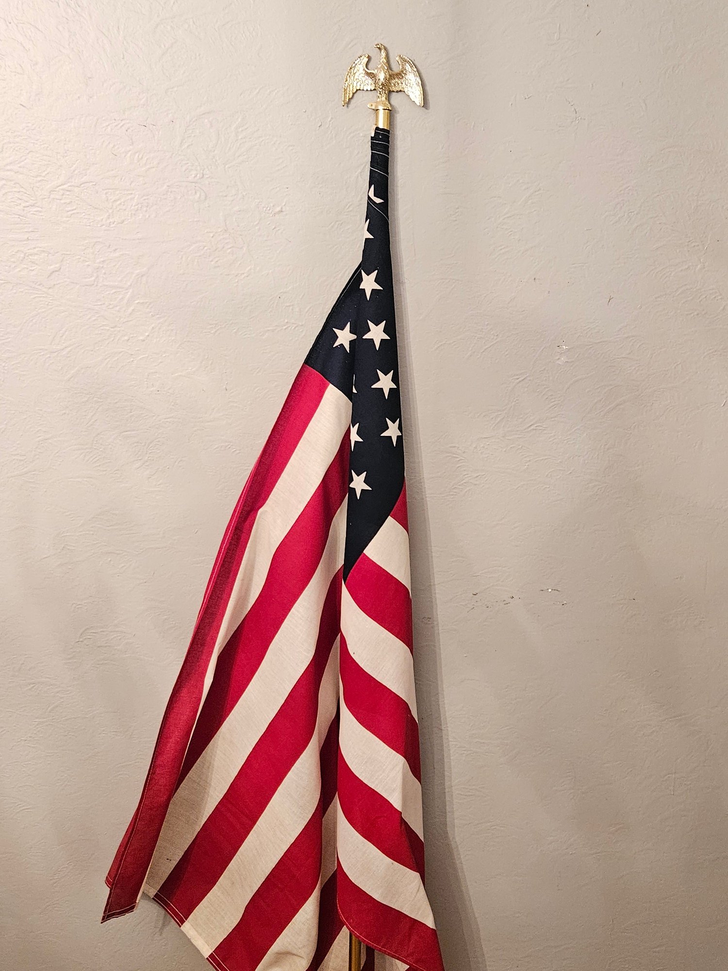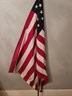 Vintage 6ft Tall Indoor American Flag. On an aluminum flagpole with a plastic American eagle finial topper. Pre-owned condition. Has some wear.