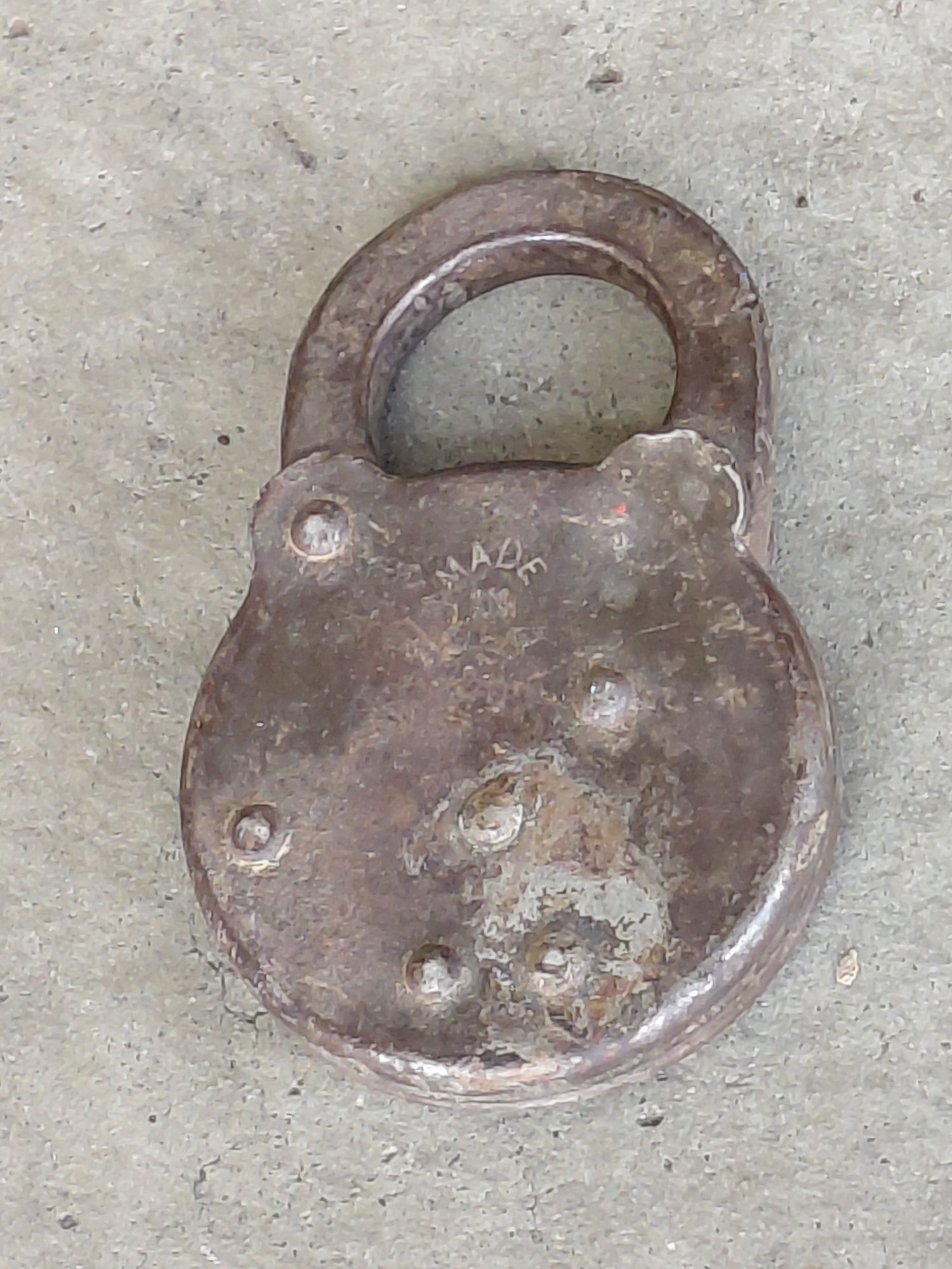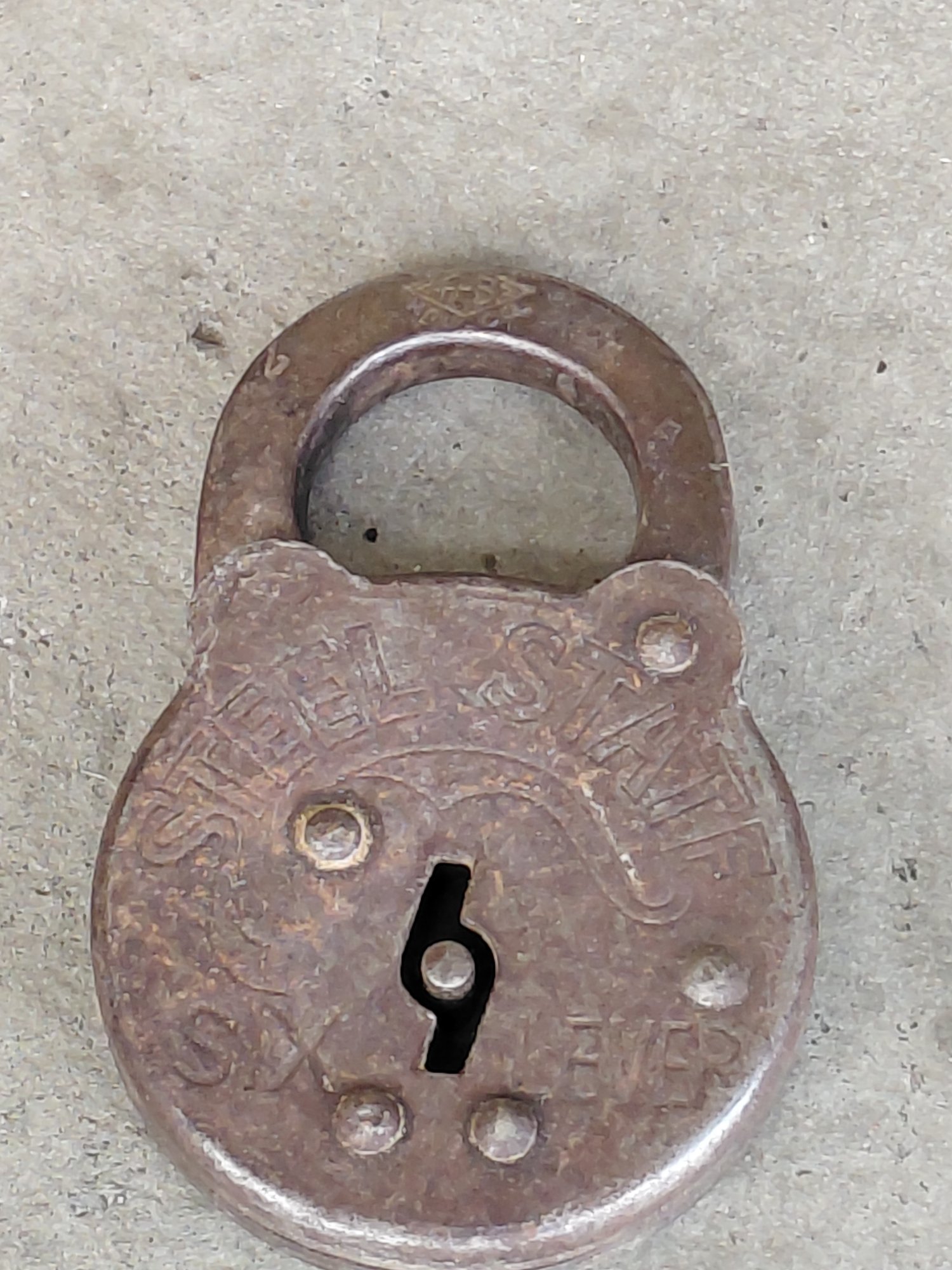 Historical Context: Padlocks of this style, often referred to as "six-lever" locks, were commonly manufactured in the early 20th century in the United States and elsewhere.