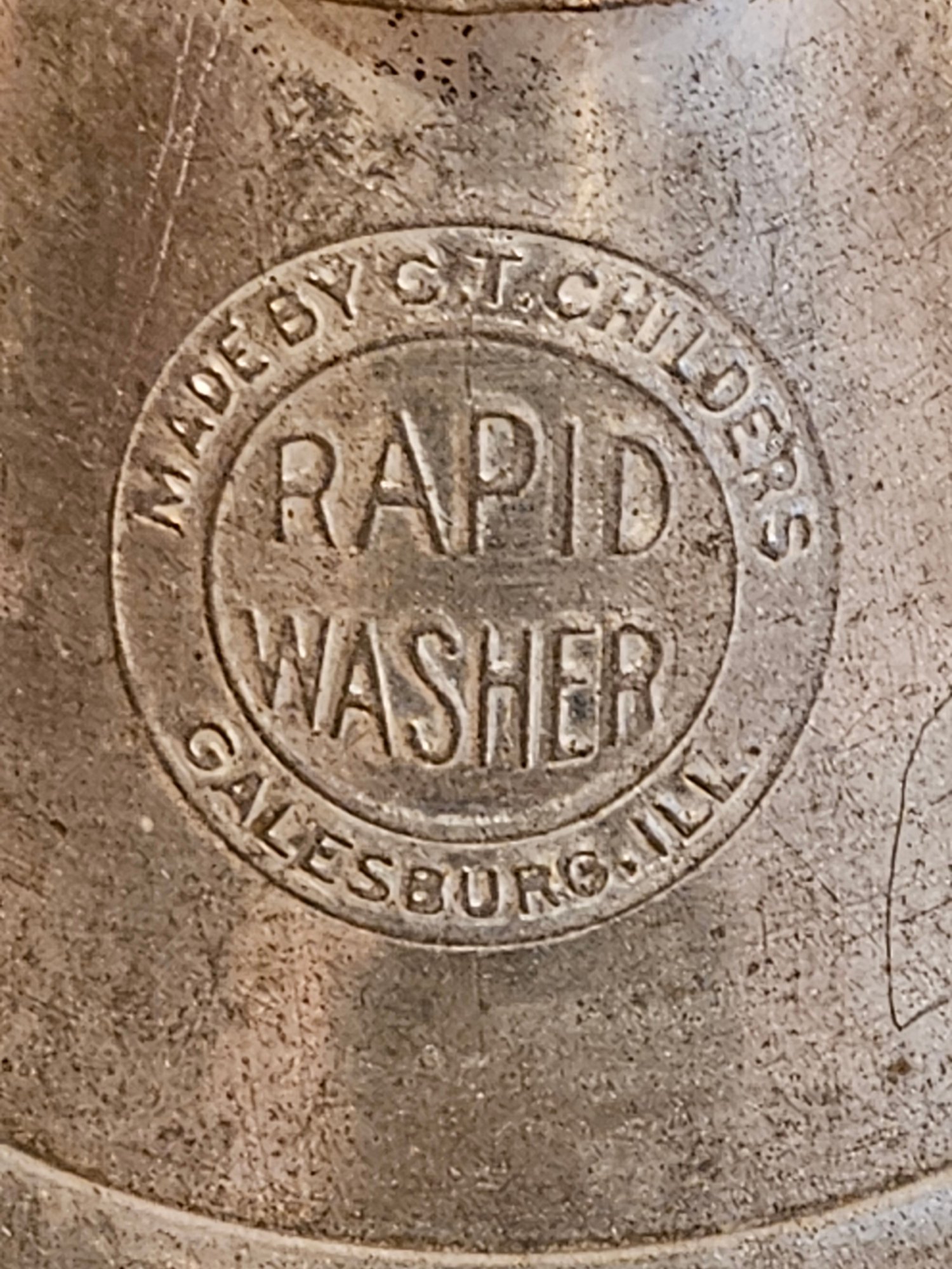 Vintage Rapid Laundry Washer plunger (or agitator), historically used to agitate clothes in a tub during hand washing. Made by C.T. Childers, Galesburg, Illinois.