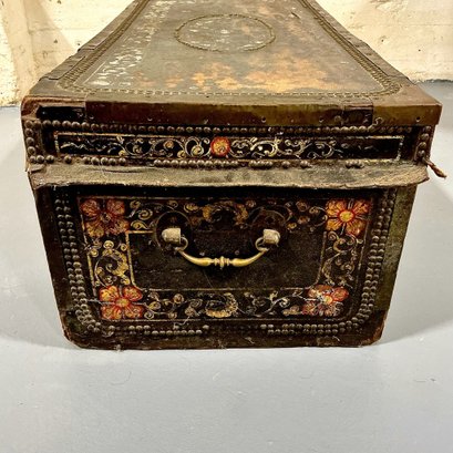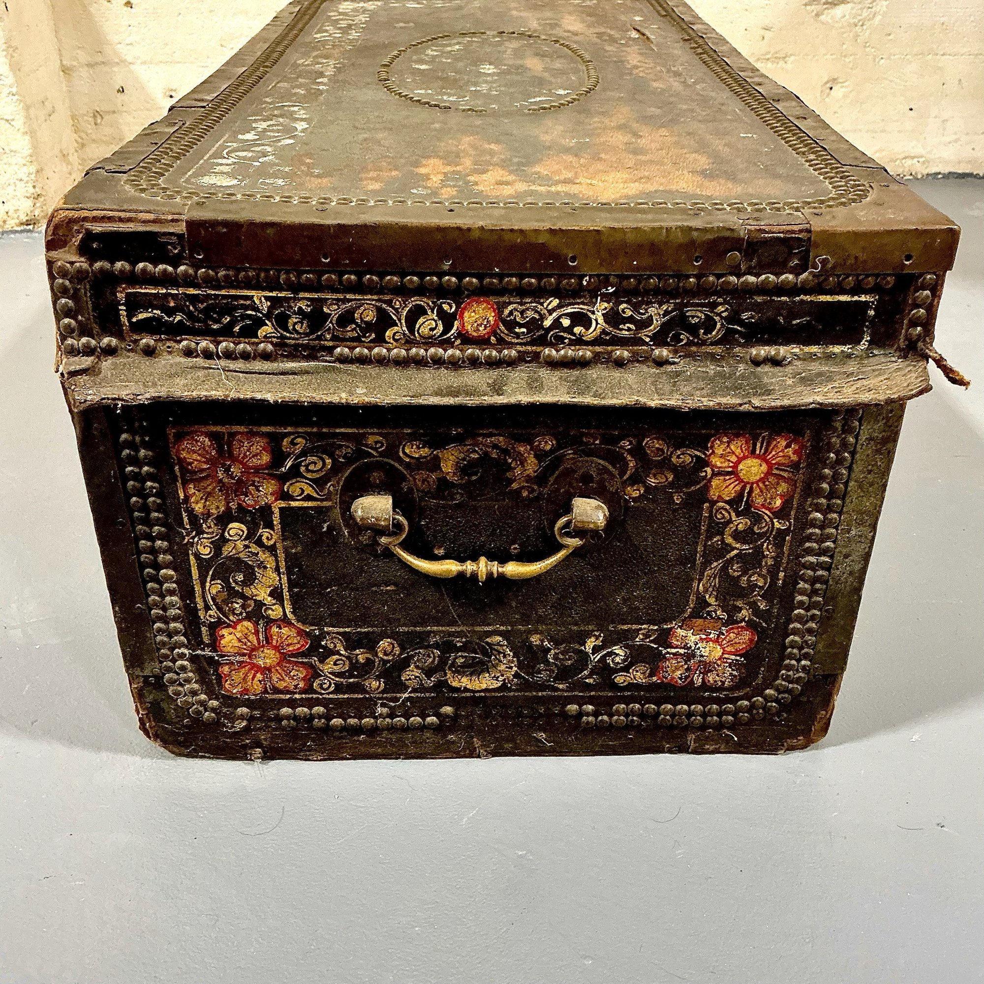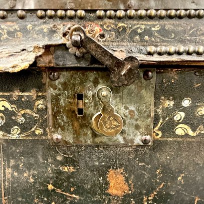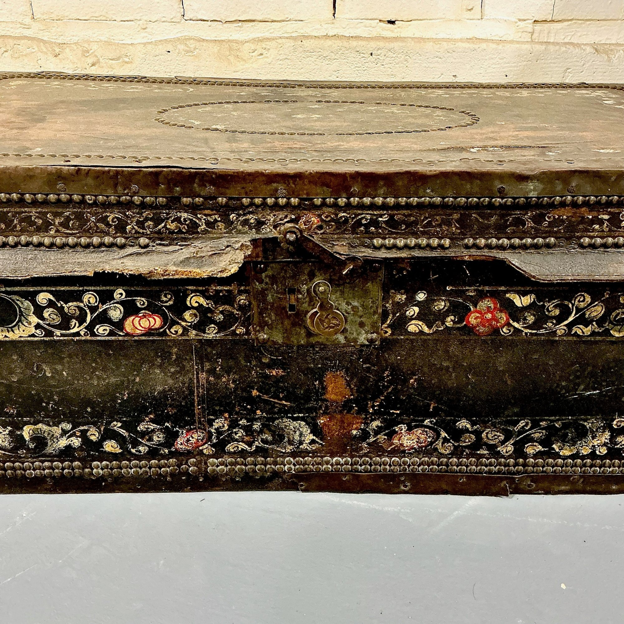 Antique 19th-century Chinese Export Trunk with Leather Cover