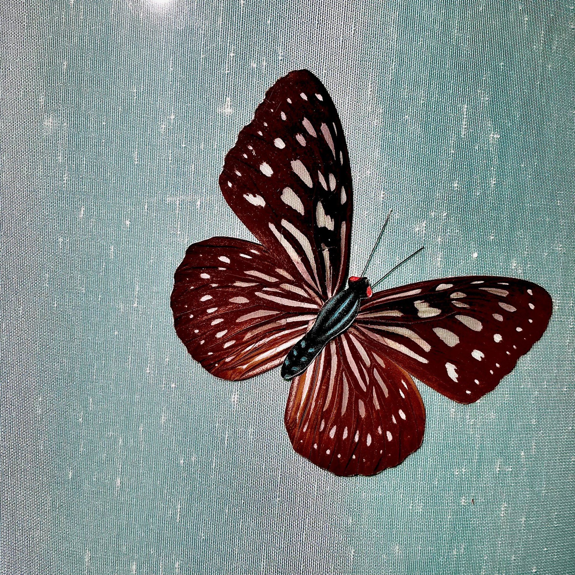 Has a botanical pattern decorated with butterflies.