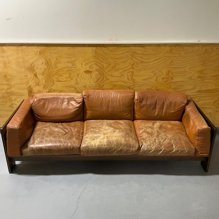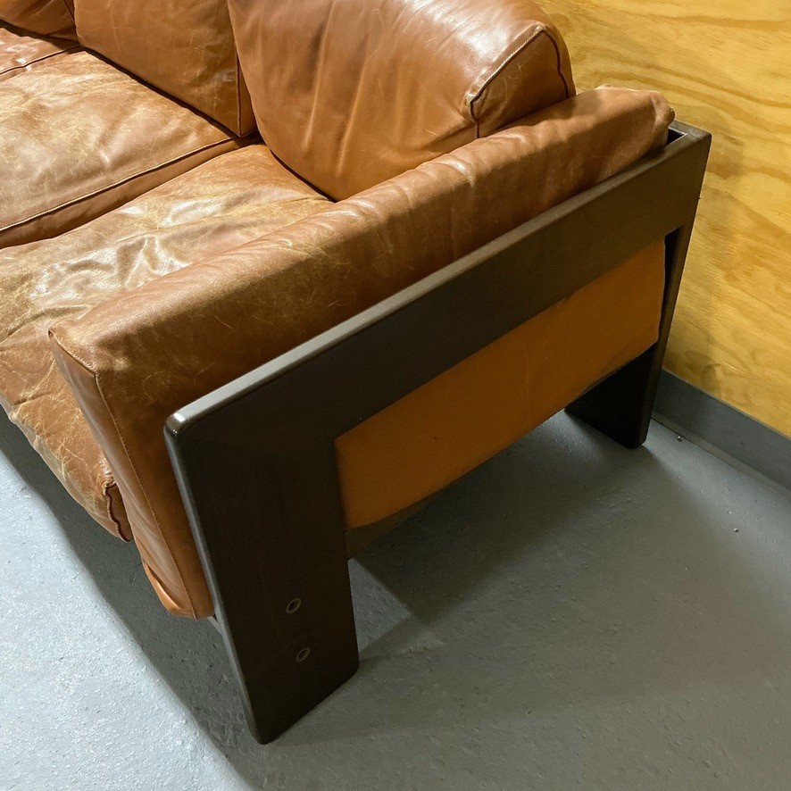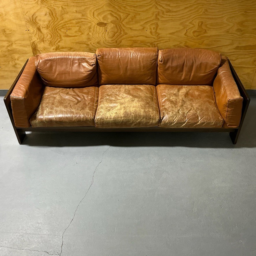 Vintage Leather Bastiano Sofa by Tobia Scarpa for Gavina