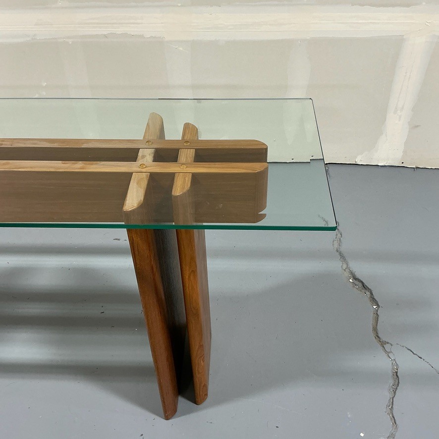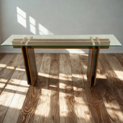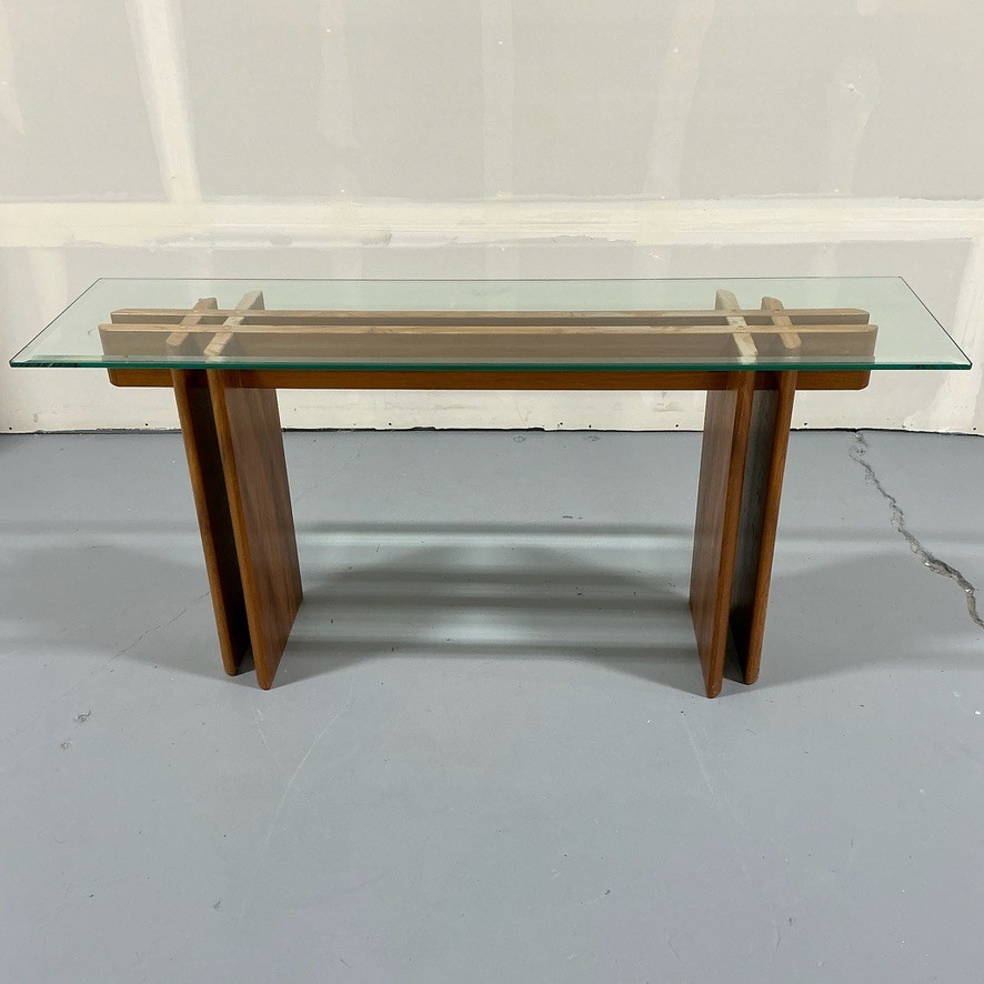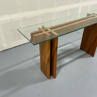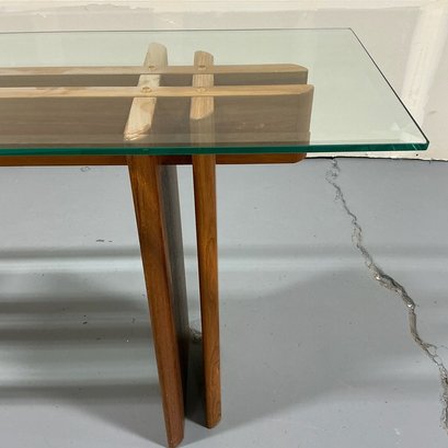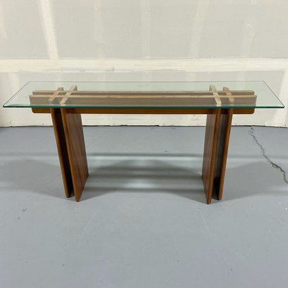 Danish Modern Console Table with Teak Base