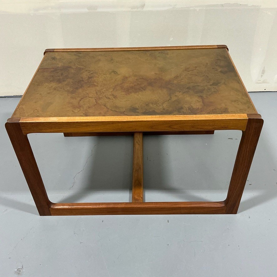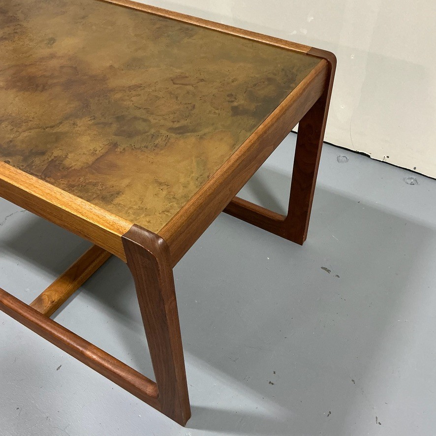 American MCM Walnut Coffee Table with Acid Etched Copper Top