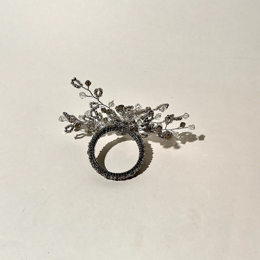 Beautiful hand-crafted design of steel and glass beads!