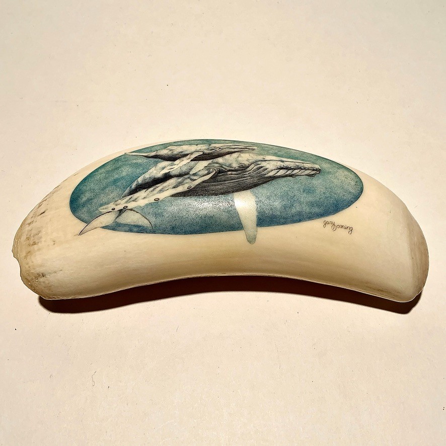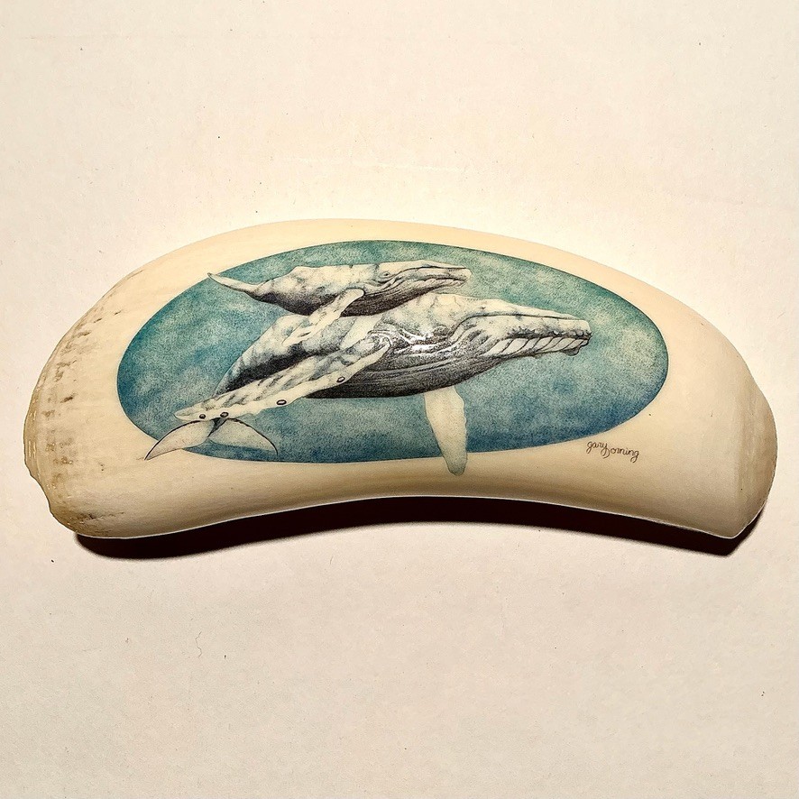 Crafted with an intricate illustration of a humpback whale and it's calf!