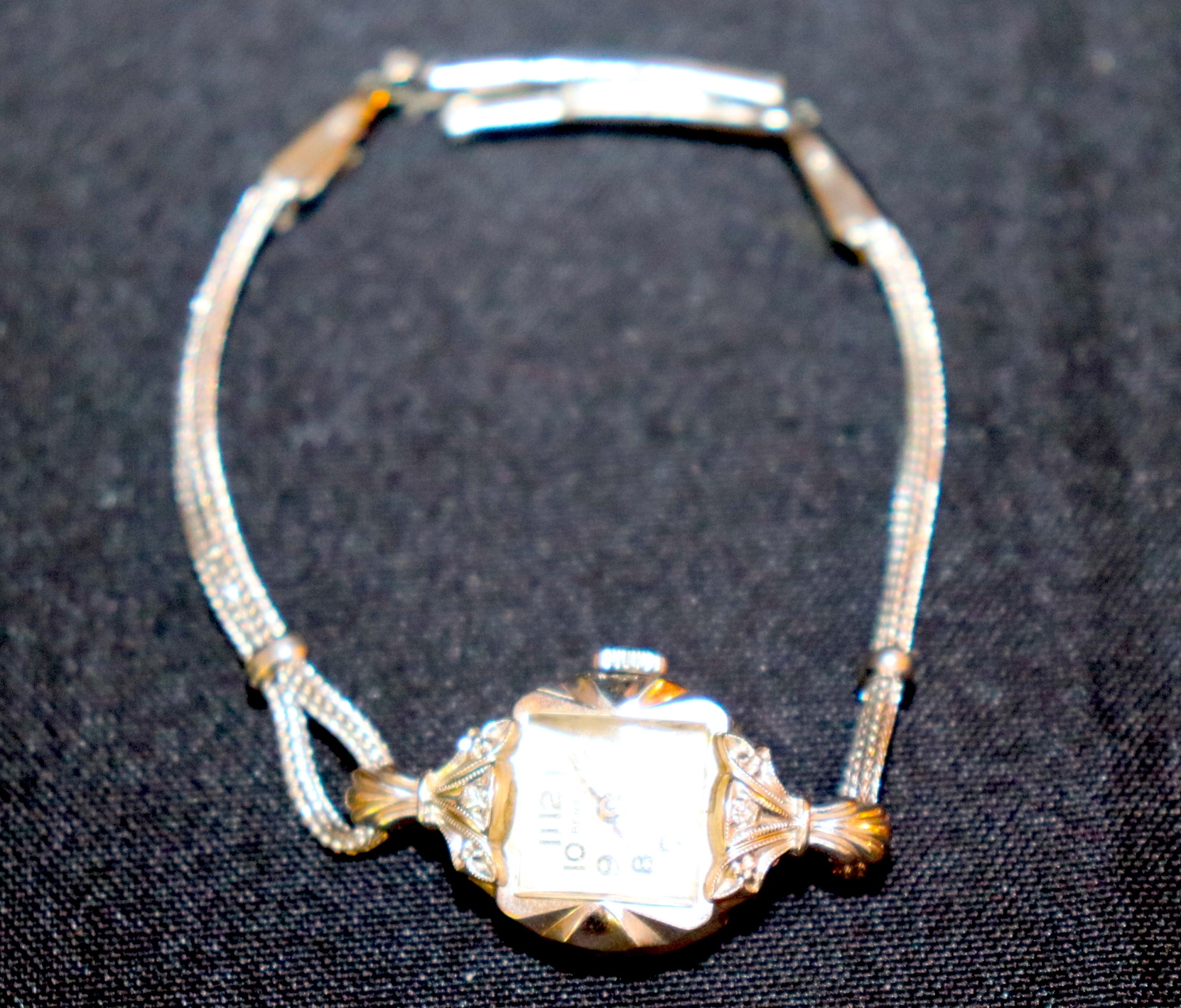 Only watch case is 14K WG. Approx. size 6. Manual wind in working condition.