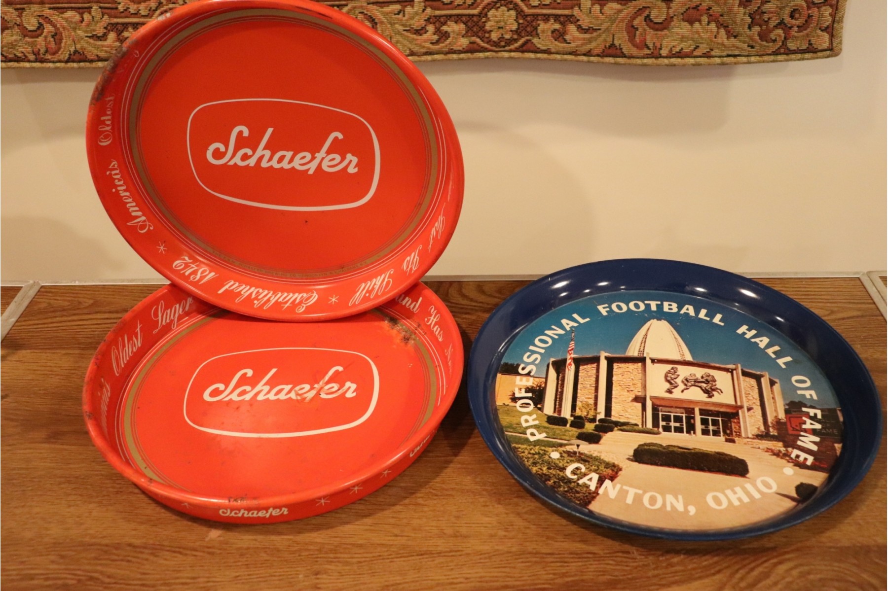 Includes 3 Vintage Metal Beer Trays 14” Diameter.