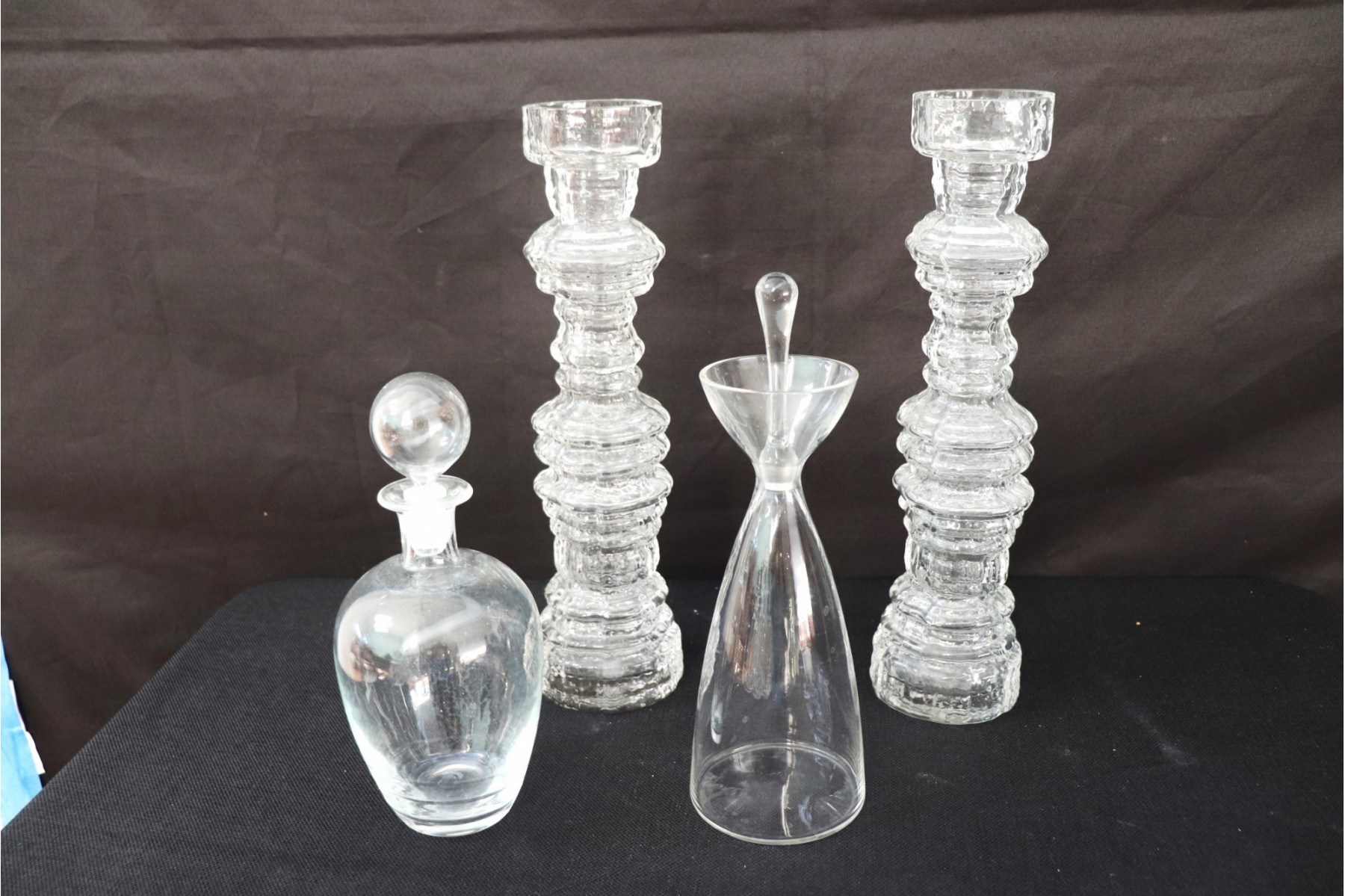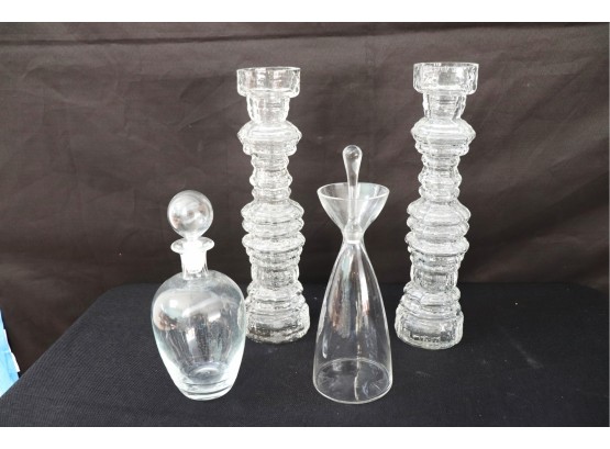 Pair of Rosenthal crystal midcentury modern Candlesticks have an icicle style shape & measure 15” T, Decanters are 10” & 11.75” T