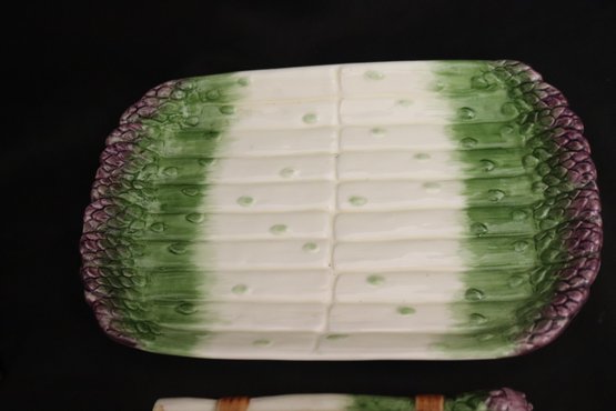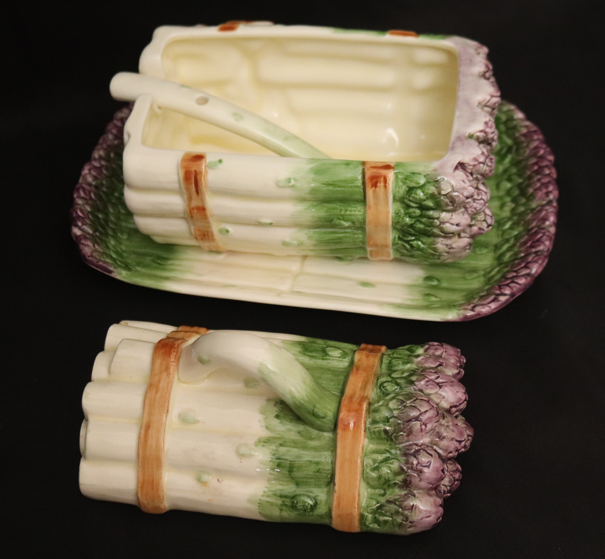 Asparagus tureen with ladle and underplate, Godinger bowl,