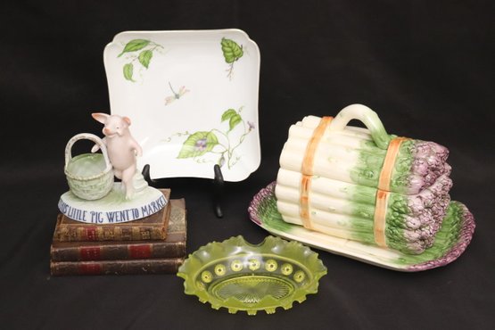 asparagus underplate & piggie has tiny chips on the underside. Asparagus