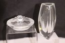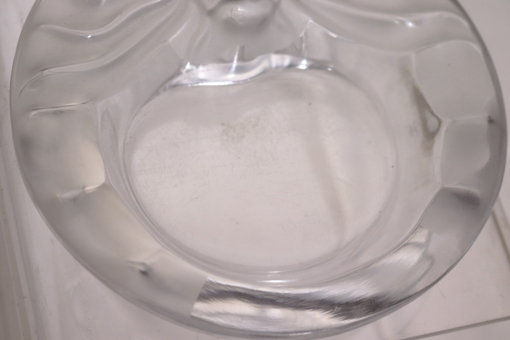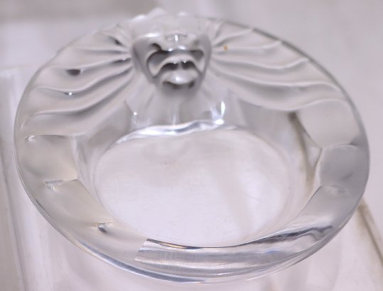Baccarat 8” T, Lalique ashtray measures 5 3/4” Dia. and has many surface